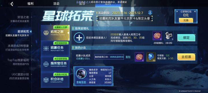 欢迎大家发码,拓荒任务邀请码我在《星球:重启》等你,请前往https://act.nvsgames.cn/gms/5faf6b8155?token=MMML6MW4加入我的拓荒小队,输入拓荒口令:MMML6MW4,即刻领取指挥官赠礼、更有千元京东卡大奖等你拿!#攻略#组队#互关