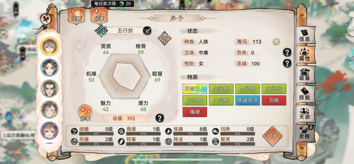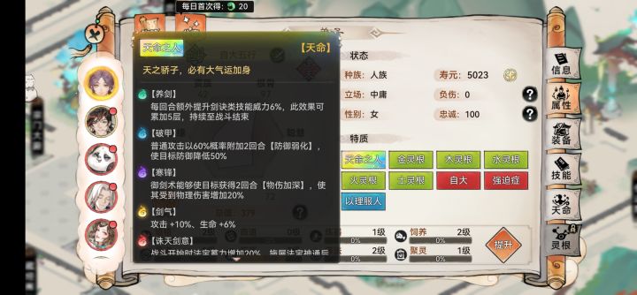 新出的功法青云剑典完美匹配剑修天命剑意+养剑,法宝用的是二阶叶子,天命仙1,灵根没点到100没有密藏。输出还是有的,不过要等青云暴击和养剑叠满之后,伤害才会爆炸,打同战力基本无敌。越战运气好越个几十万(容易假赛)也没问题。现在青莲剑典只有五层,地宫没抢到。有被动之后应该会更强。 原本用的五行剑带木之灵体,但天命只有剑意没有养剑。伤害有点拉胯,同战打不过,后面找主播小卓哥帮赌的天木剑。 现在还行,