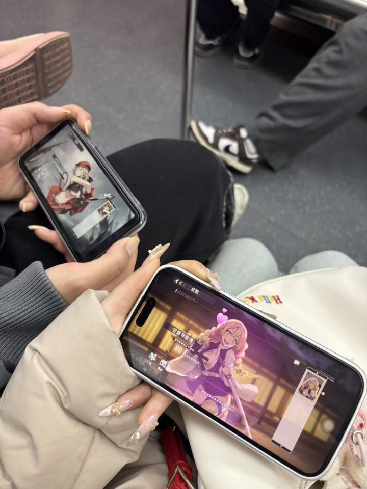 地铁上和朋友一起玩二次元游戏!