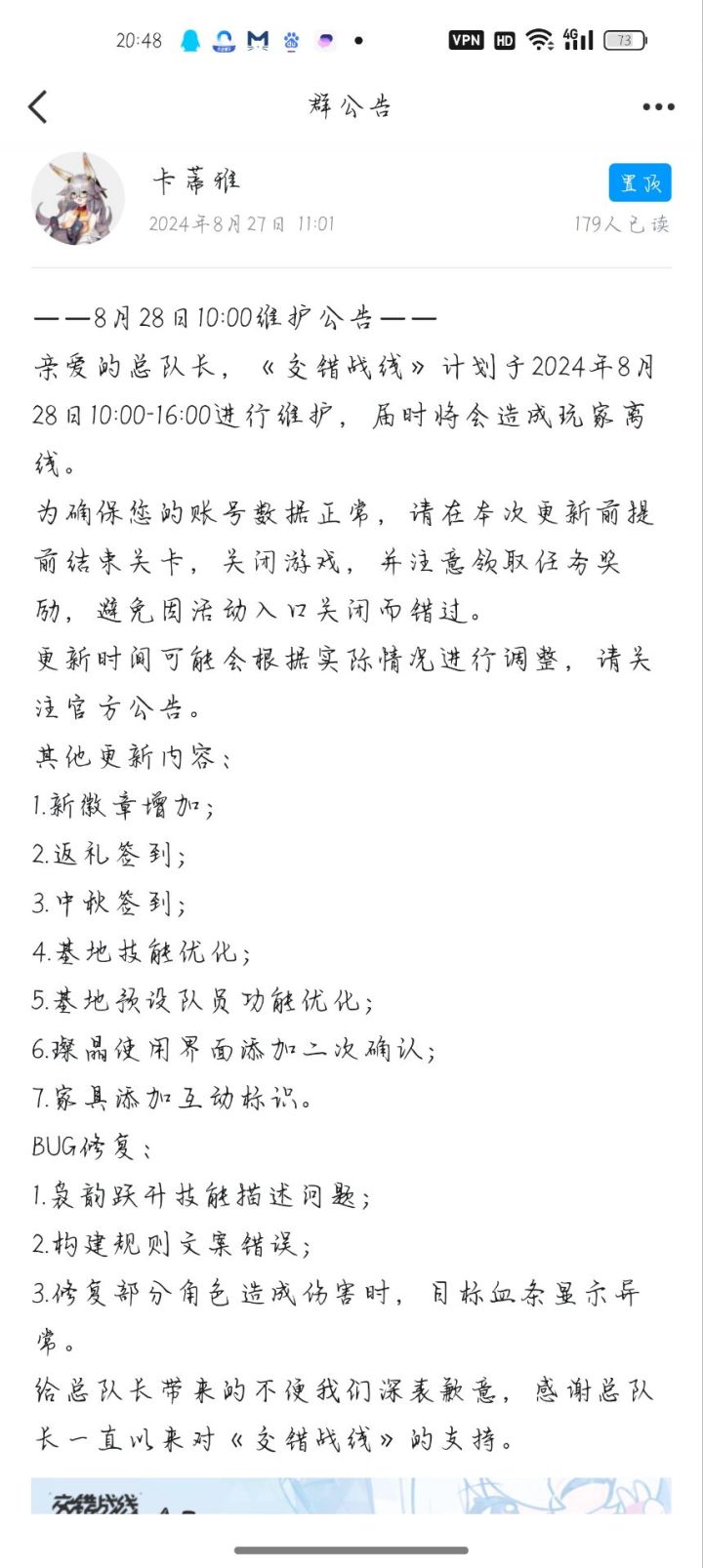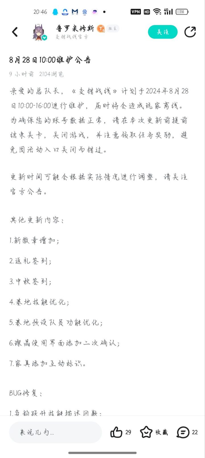 你们这我该信哪个?16点还是14点?游戏内打错公告了?#交错战线 #交错战线bug