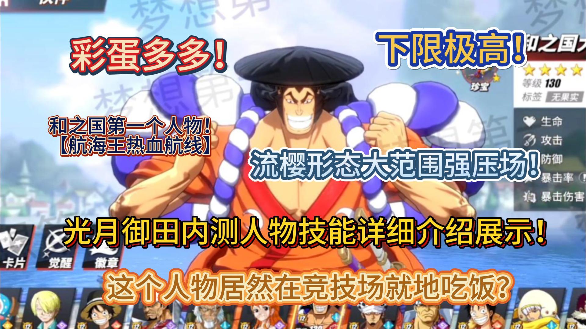 光月御田内测人物技能详细介绍展示!彩蛋多多!流樱形态大范围强压场!下限极高!这个人物居然在竞技场就地吃饭?和之国第一个人物!【航海王热血航线】#航海王热血航线 #光月御田 #御田 #内测 #人物介绍 #展示 #我的游戏日记vol8