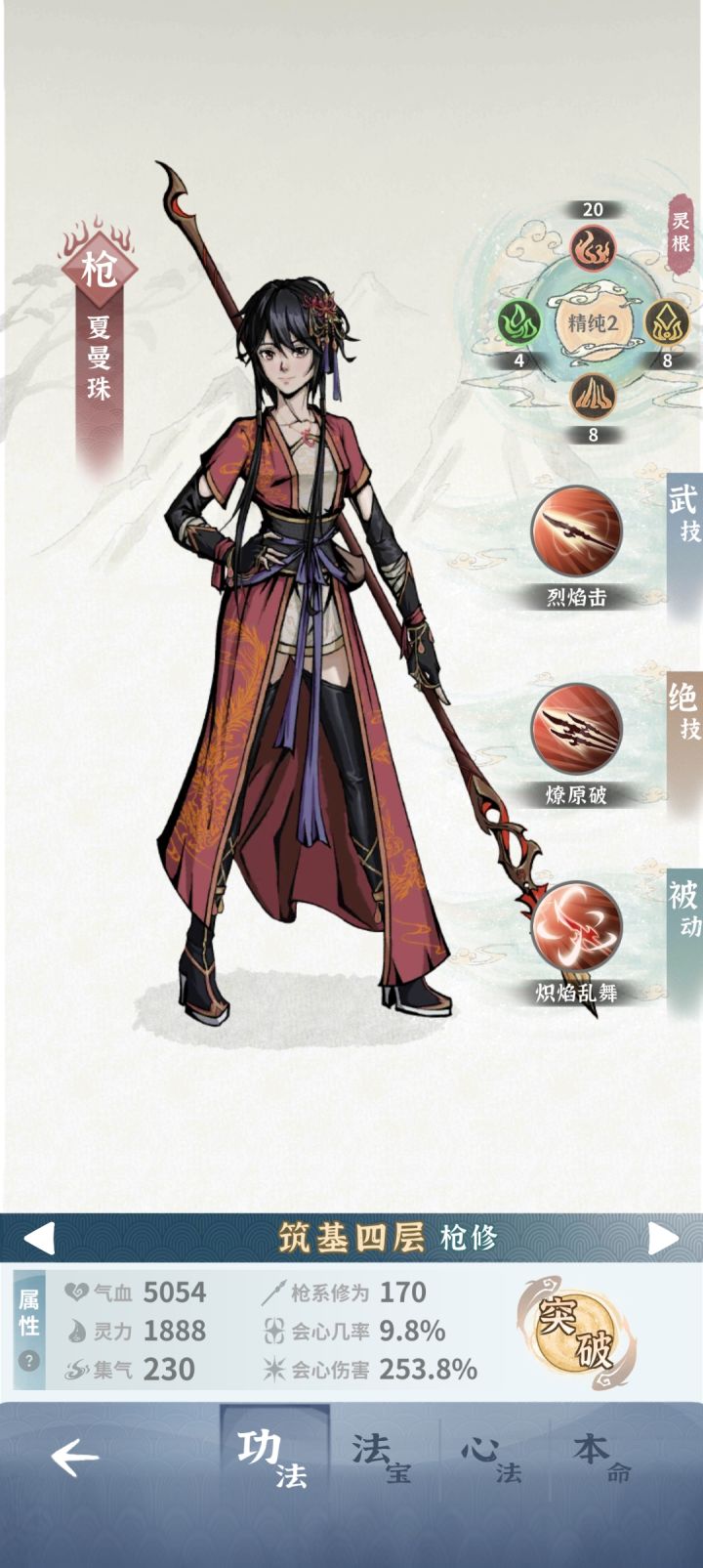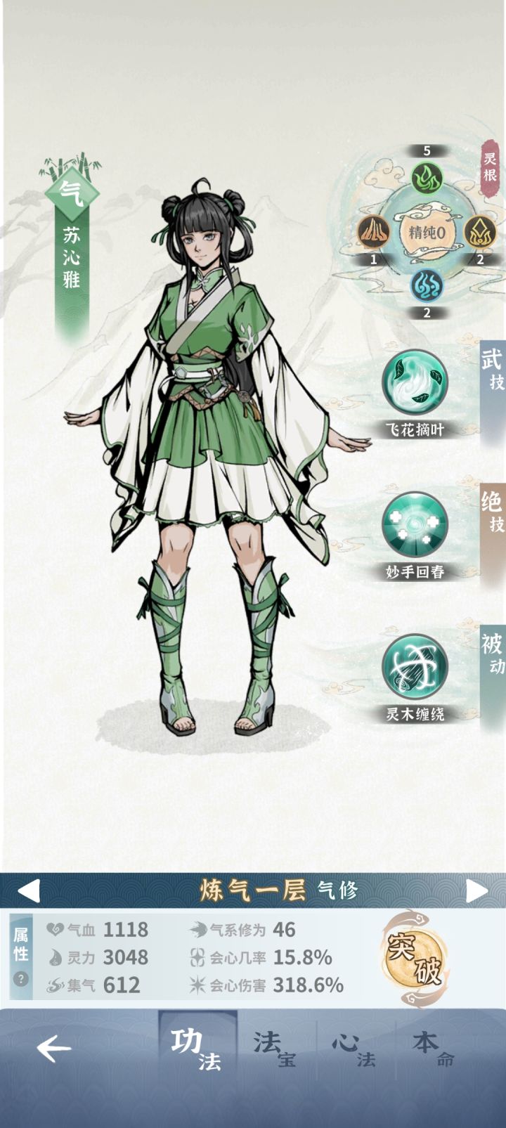一、角色1.大师姐:最强aoe范围输出,伤害范围大,能抗能打,几乎没什么缺点,非要说缺点就是是个近战。走肉流堆血量,减cd装备和挂负面功法。走输出堆护盾和灵力,枪系精通,克制和暴击。不要堆五行威力,收益很低2.男主:最强单体输出,对面只有一个人时候,九把飞剑打一个人身上。缺点就是前期是个废物,学不了高阶功法,前期不要玩。无脑堆剑系精通、克制、暴击。后期本命心法开了以后,才可无限制学两本高阶功法