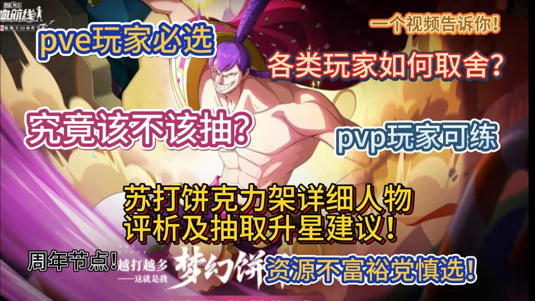 苏打饼克力架详细人物评析及抽取升星建议!各类玩家如何取舍?究竟该不该抽?一个视频告诉你! pvp玩家可练,pve玩家必选,资源不富裕党慎选!周年节点!【航海王热血航线】#游戏种草计划#游戏推荐#航海王热血航线#苏打饼#人物评析#抽取建议