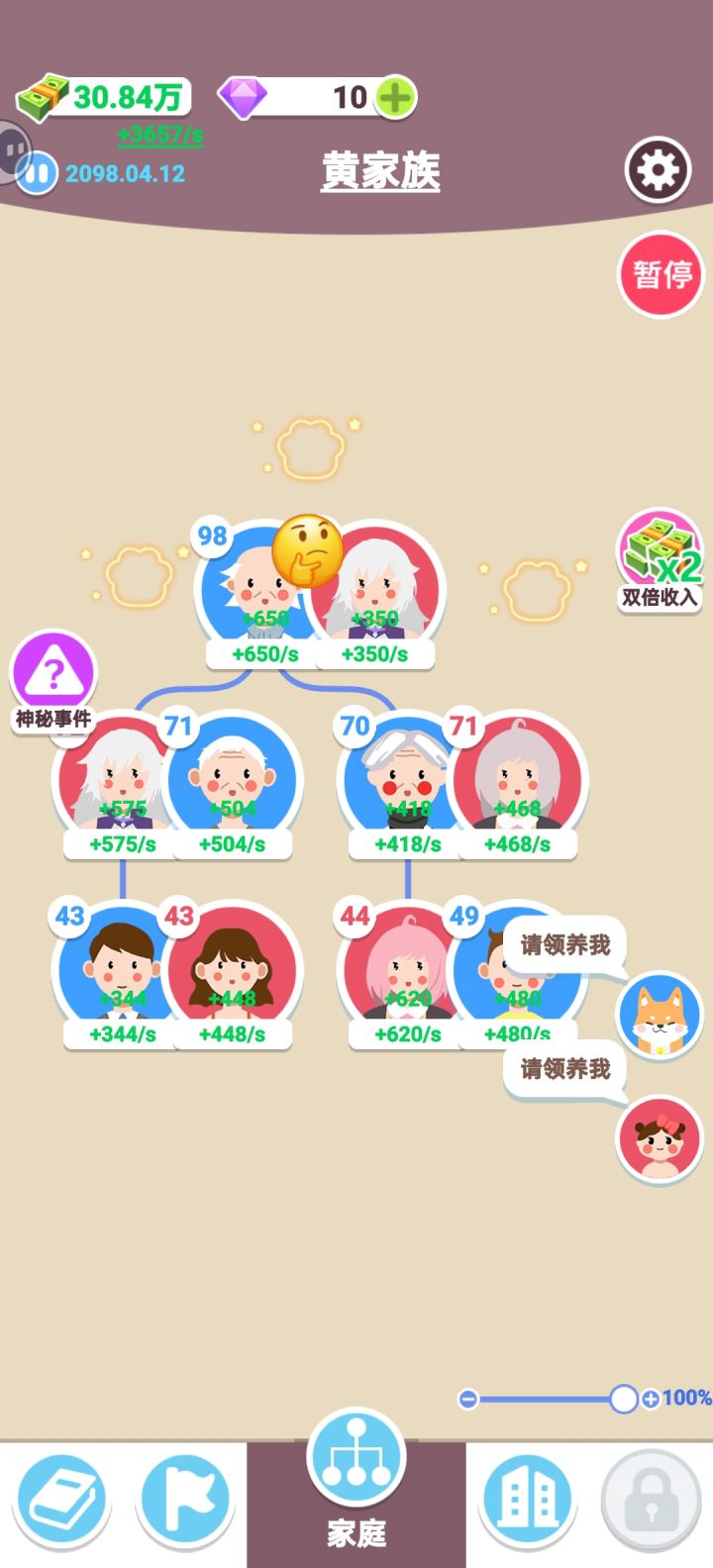 Q:他们总在家里啃老怎么办?A:都去给我打工!盘下一家咖啡店,都去给我打工养自己的娃——升级单家咖啡店的钱花费比在买一间划算。还能等他们自己去找面试机会,不靠谱的娃都去咖啡店打工去。Q:怎么不生崽了?A:到一定年龄之后身体机能下降,就生不了娃了。所以生崽要趁早噢!但是一定一定要关注自己的经济状况酌情生几个哩~游戏是支持国家政策的自愿三孩哈(。・∀・)ノ゙