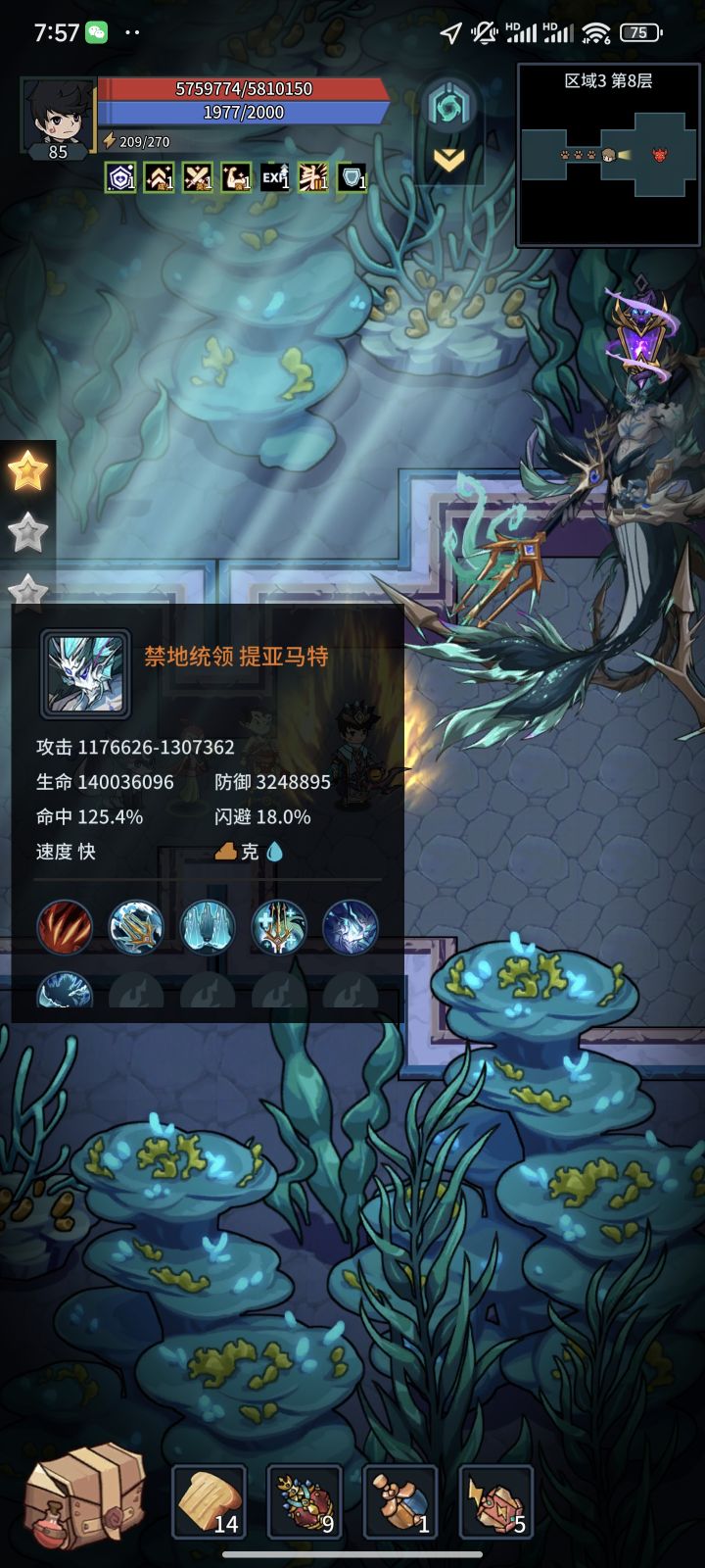 人鱼属性还是蛮高的。 我吃了几个百分比的小面包勉勉强强抗住。 9个红药。 蓝药我差点不够了,附上属性#攻略#人鱼#提亚马特