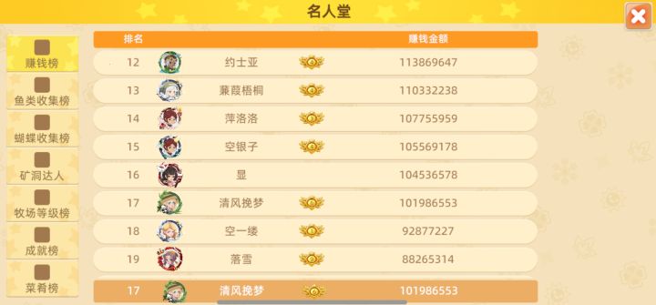 【恭喜】清风挽梦!成为达成亿万富翁成就的第十七位玩家!