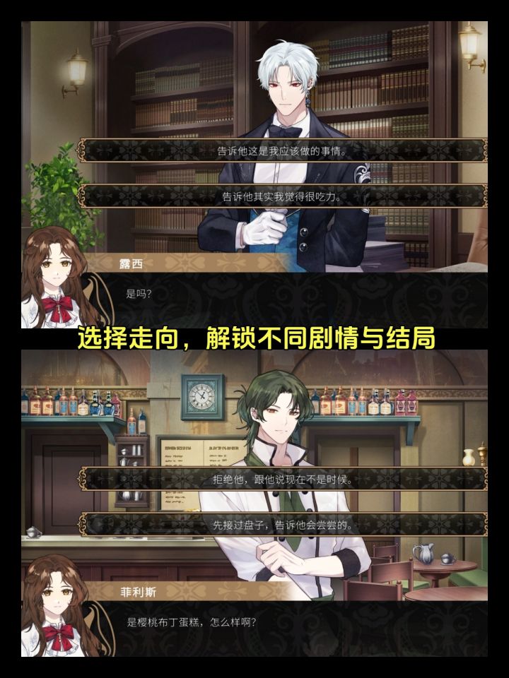 🎮名字:黄昏魅影✅平台:Steam(12月17日已发 61.2)🏷标签:模拟、视觉小说、乙女------🌸一款乙女向的视觉小说,故事发生在维多利亚时代,游戏以伯爵千金“林德尔·露西”(可改名)的立场,通过选择解锁不同剧情与结局,沉浸式体验19世纪的英伦风情。-✨游戏中有四位男主角,1️⃣神秘忠诚的吸血鬼管家、2️⃣冷静又多情的伦敦刑JIN、3️⃣精明的心理学教授、4️⃣能力出众的甜点师