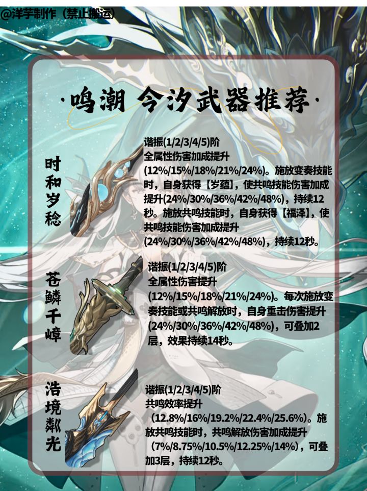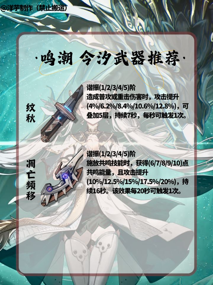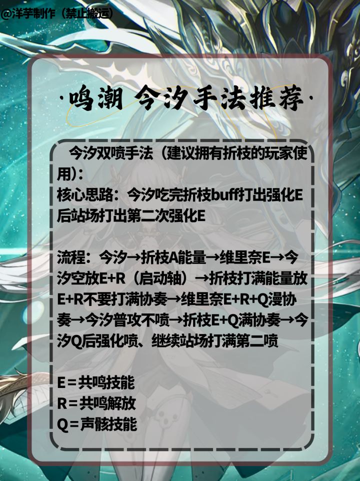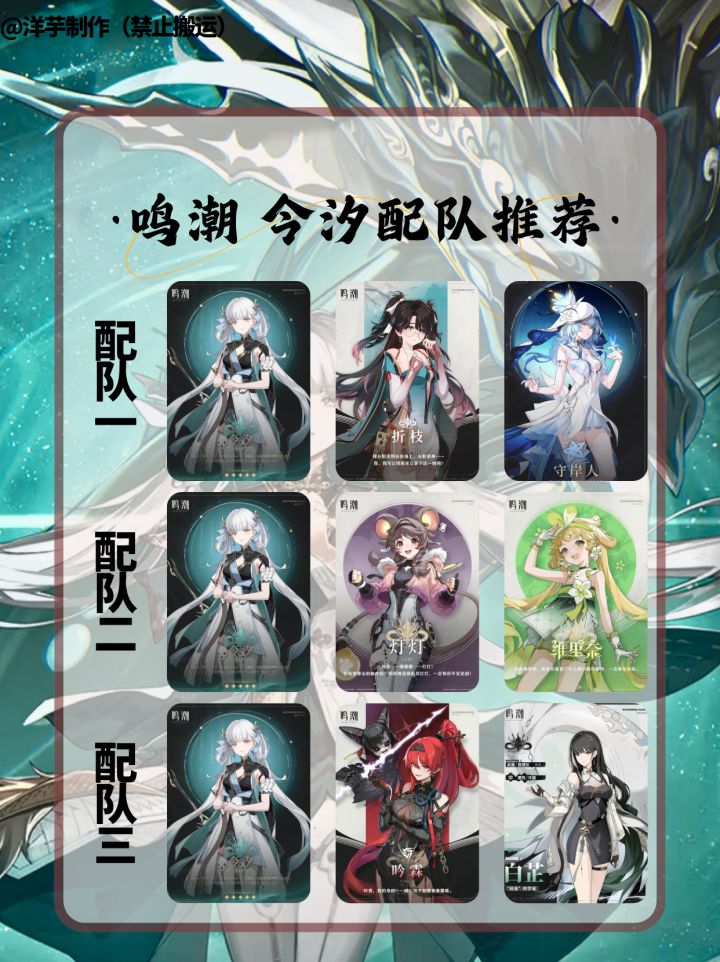 各位指挥官,开拓者,旅行者,漂泊者,绳匠,组长,舰长,导演们,大家好啊。我是小编,洋芋。 全新制作的一图流今汐攻略~来了!希望各位能够喜欢!制作者:洋芋制作不易,禁止搬运。大家喜欢的话,可以关注小编!后续小编会陆续制作一图流新角色攻略!!#鸣潮 #鸣潮攻略 #游戏种草计划 #今汐 #鸣潮今汐 #今汐复刻 #今汐配队