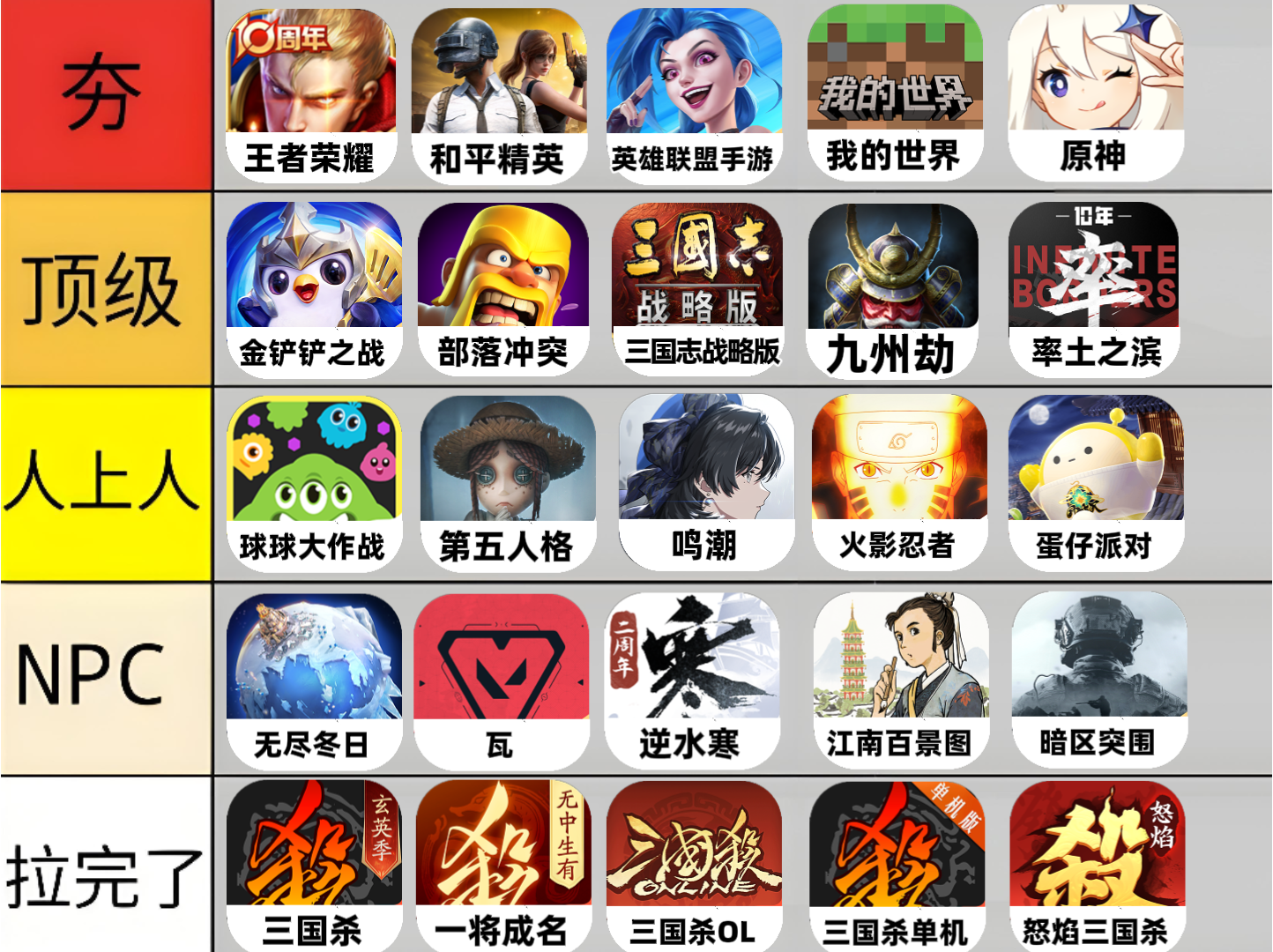 #手游#手游排行#手游推荐#从夯到拉#锐评