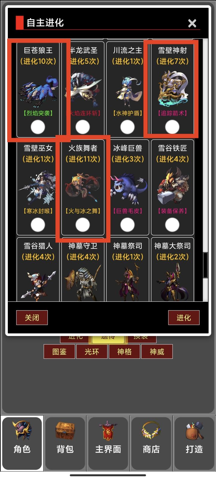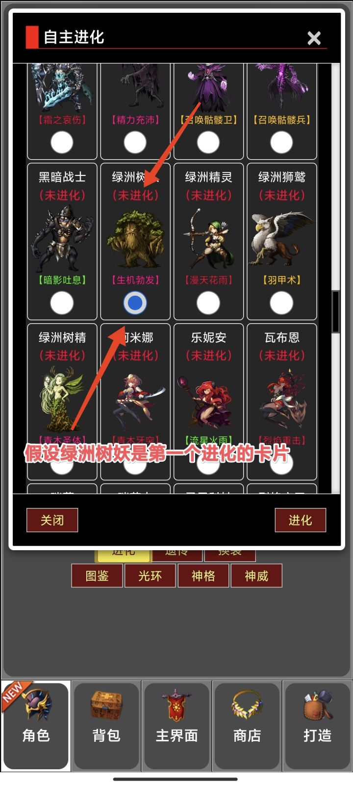 #从蛙开始的进化之路 假设我是一个刚进入游戏的新玩家 在角色-进化-卡片选择我曾做错的一件事错误演示[图二]: 无脑进化同一张卡片,没错![图二]那张图就是我刚开始不会玩的样子[天真以为无限进化同一张卡片会无限增加技能效果],然而,并不会!!!!这样子的结果,你只会浪费次数,并且得到两个技能结晶(就是你分解卡片得到的数量!!!非常浪费)!进化10-进化7-进化11就是一个非常赤裸裸的教训。