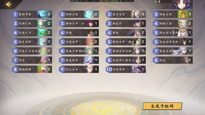 一直比较喜欢资源类的后期卡组,所以入坑就开始攒木,但是被快攻打破防了所以用送的600玉改了个很有攻击性的id,纯口嗨各位轻喷。成功靠肝+狗运+人脉上分,第一次上尊了,纪念一下!另外感谢雏绘、昭岩、益生、肥鸡等诸多大佬的倾囊相授(排名不分先后),雏门子弟,何惧于天下!#仙剑奇侠传九野#九野