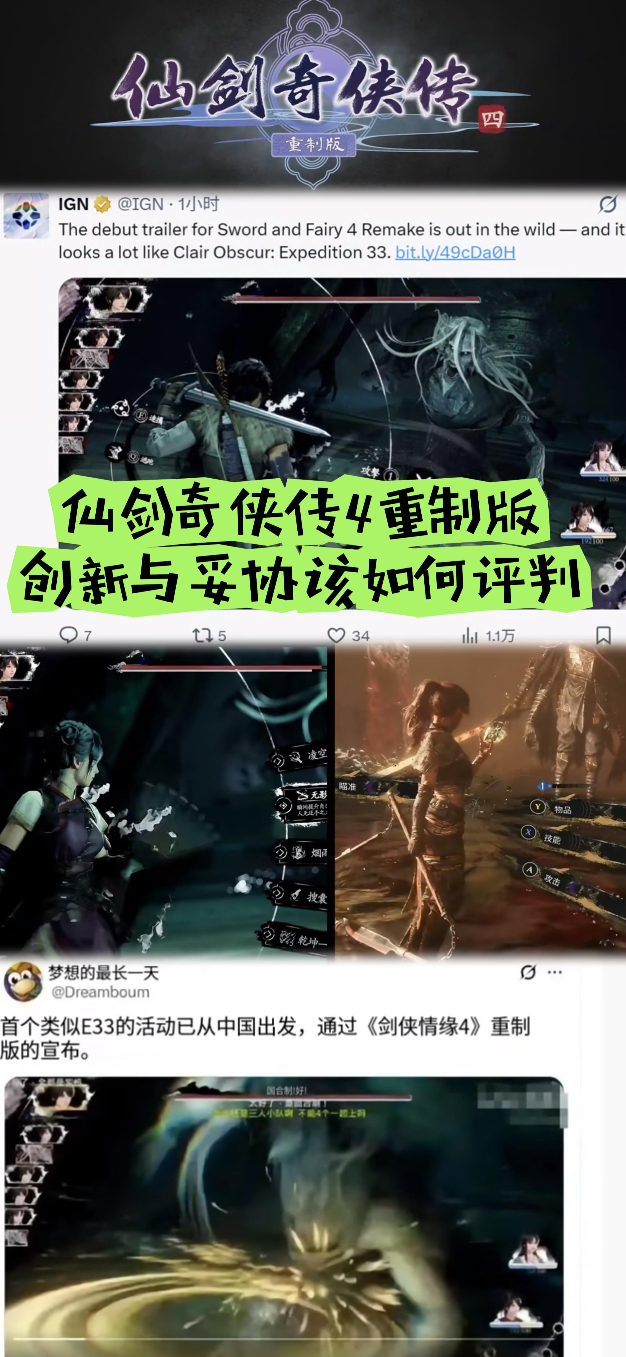 近日,《仙剑奇侠传四重制版》首部实机预告片公开,UE5引擎打造的经典场景还原引发情怀共鸣。但在国外引起了很大的争议,有玩家说,这战斗系统怎么跟拿了TGA大奖的《光与影:33号远征队》看着一模一样? The Gamer等媒体指出重制版放弃原版ATB时间轴系统,改成了回合制,加了格挡什么的,那个UI界面啊,打架的镜头啊,和《33号远征队》特别像。 有海外博主直接称其为“中国版E33-like”,