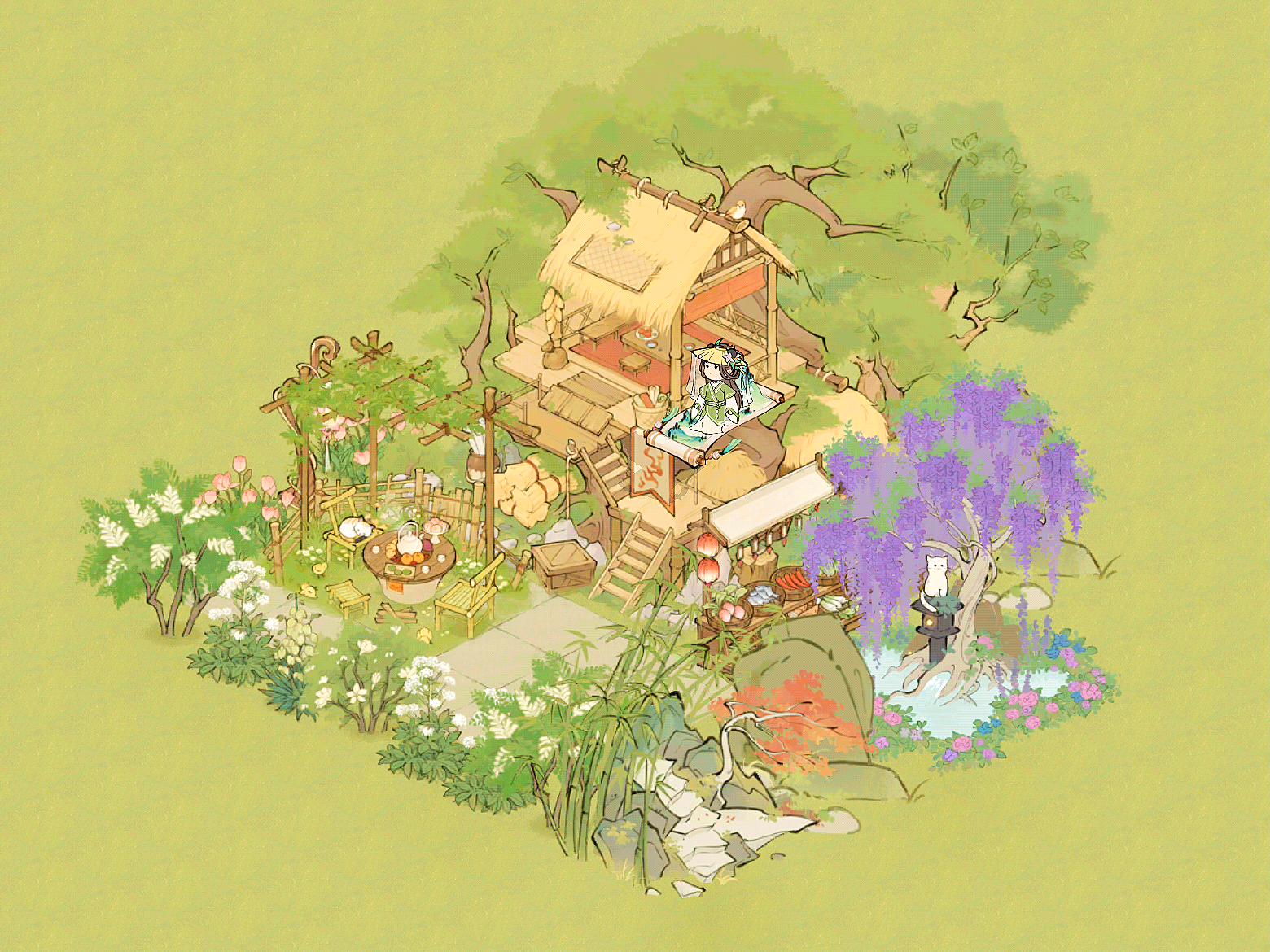建筑:倚木小筑 醒春围炉 柔波映花 #仙山小农 #仙山小农公测 #仙山小农布局 #仙山拾花筑梦造景大赛