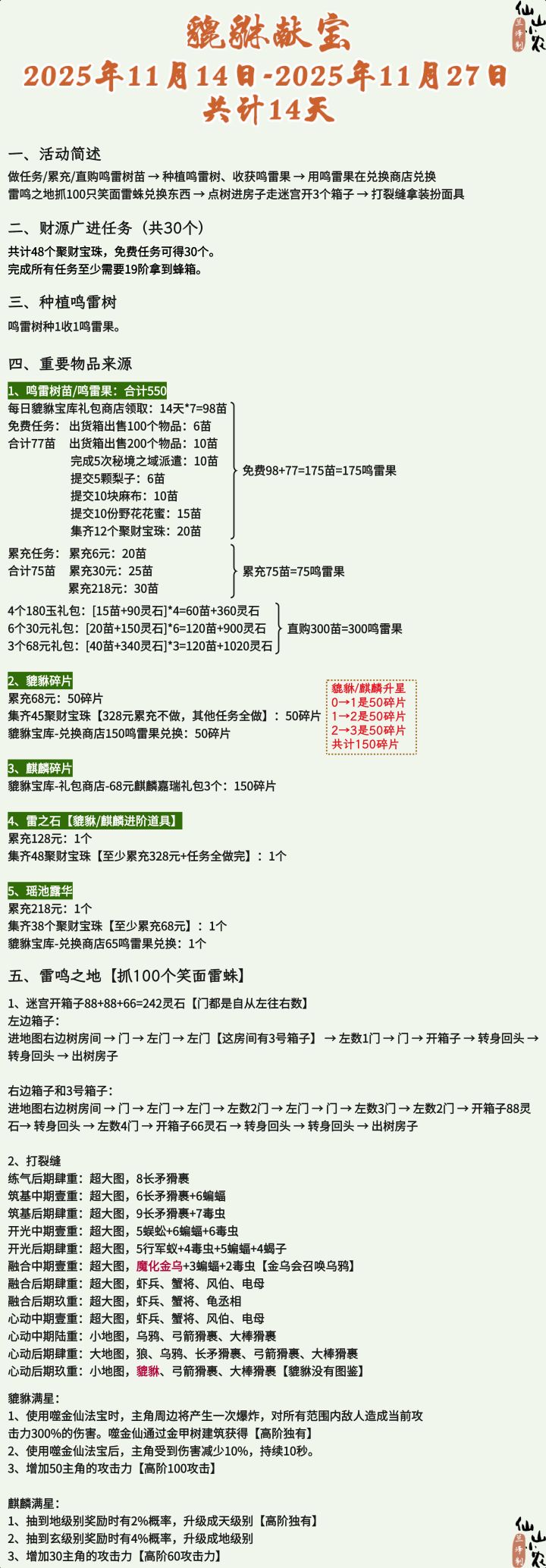 有错告诉我。#仙山小农 #仙山小农攻略 #仙山小农活动攻略