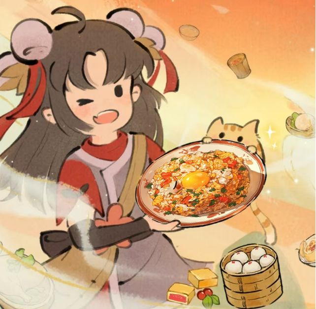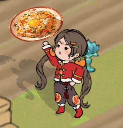 菜肴名称:蛋炒饭烹饪食材:杂交水稻*2,鸡蛋*1,大葱*1,胡萝卜*1描述:水稻蒸熟颗颗成粒备用,大葱胡萝卜剁小块,加油炒熟,加入鸡蛋翻炒,最后加入煮好的水稻,翻炒均匀即可出锅。作者:@城椿展示:如图游戏账号:202004#仙山小农食谱共创