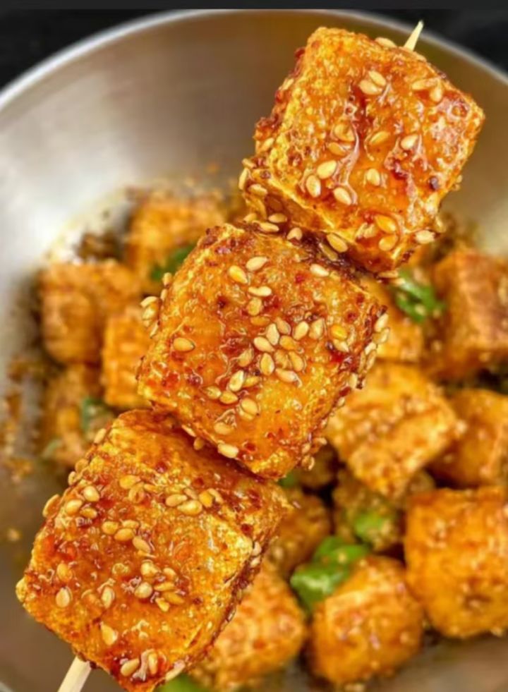 id 203242 #仙山小农食谱共创 菜肴名称:香辣脆皮豆腐食材: 豆腐×1 辣椒×1 香菜×1步骤:1.豆腐切成小块,放入油锅中炸至金黄,捞出控干油备用2.加入2勺熟芝麻,半勺白糖,1勺辣椒粉,半勺孜然粉,2勺生抽,3勺辣椒油,1勺陈醋拌均匀。3.最后加入适量香菜