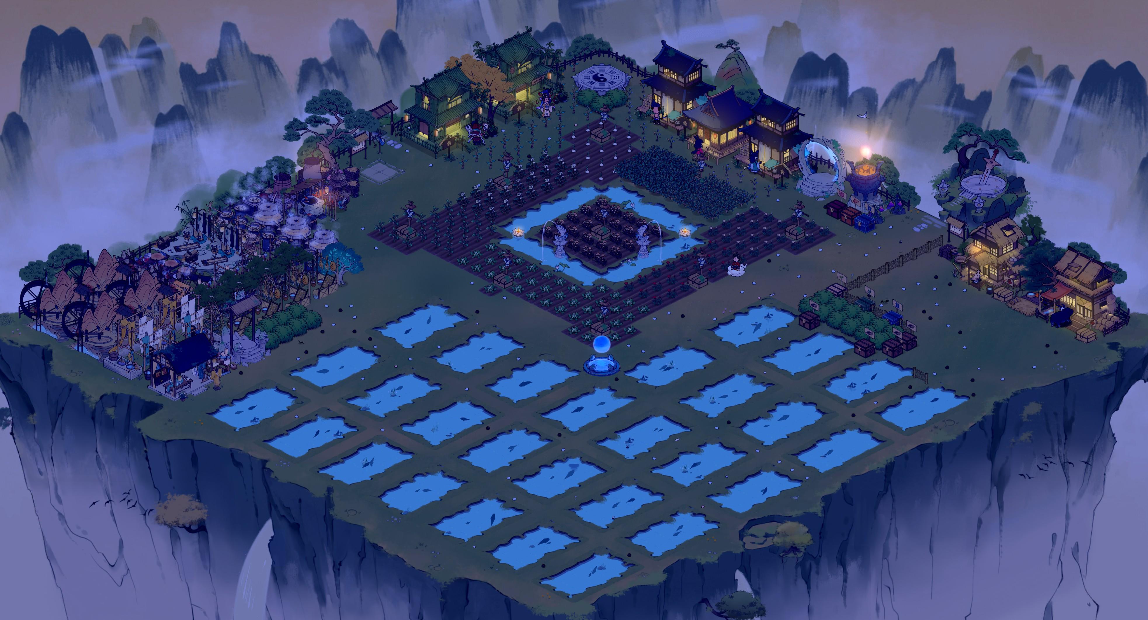 嘿嘿,其实这是我的装修!把地块解锁完了以后就开始装修了,一点一点的弄,弄了好几天!我一直觉得修仙的仙人都是隐居山林的,所以我比较喜欢山水风格,势必要有一种陶渊明诗中所写的那样“久在樊笼里,复得返自然”的归居田园的感觉!(当然可能没做到这么高级)狗头狗头保命因为喜欢山水风,所以也在Tap里看看好看的布局,其中我的制衣区是抄的这个小哥哥的,大家可以看一下,是我最喜欢的布局风格,排第