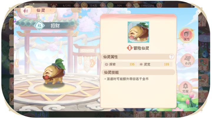 隆重请出咱们的 「#仙灵 天团」 三位成员:🌱 【葱茏】 - 一盆超萌的绿色小植物!你的灵气管家!🌿核心技能:提升#庄园 灵气上限!与玉提豹、地蛋并称 “宅家三宝”,宅家致富必备神器!划重点!觉醒后能减少作物生长时间!⏱➡💰💰 【招财】 - 行走的金币制造机!官方吐槽笑死我:远看有点丑,近看也不好看的“地包天”!😂 但!是!人家可是凭实力吃饭的!技能超直白:仙灵#冒险 时能带来