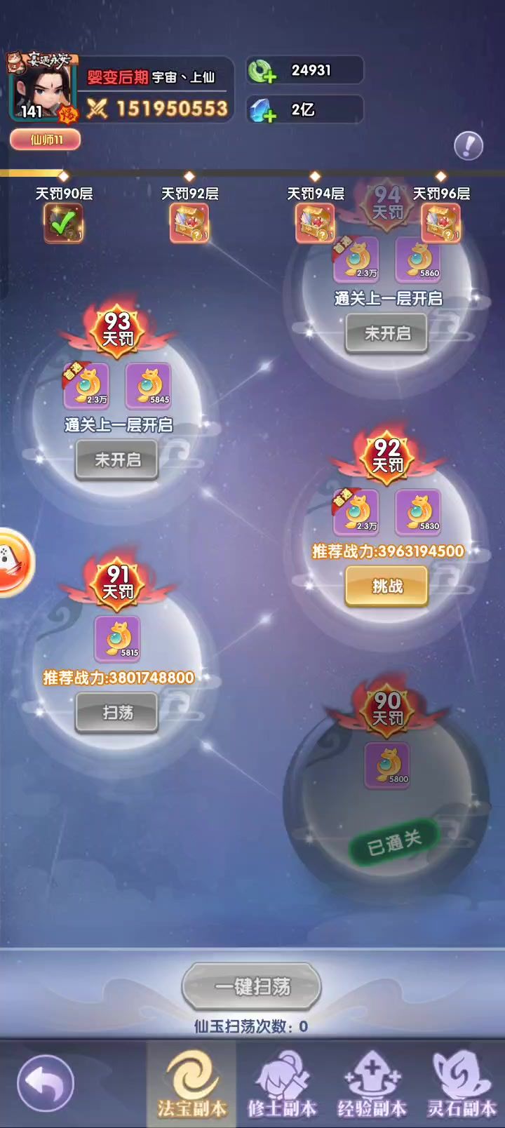 诚邀各位道友共同见证![表情_加油][表情_加油][表情_加油] 一百零八天打造最强零氪(目前论坛里我所知的),终于顺利毕业,原本打算争取在飞升前毕业的,实在是人算不如天算,晚了那么一两天,不过问题不大,飞升后有新玩法是挺好的,就是对平民来说双阵打副本并不是那么友好。6000层通天塔总的来说最恶心的就是4号位是纳多的阵容,刷N久才过关,其余的都还可以,调调站位、法宝便可以快速通关。顺带说一下,通天