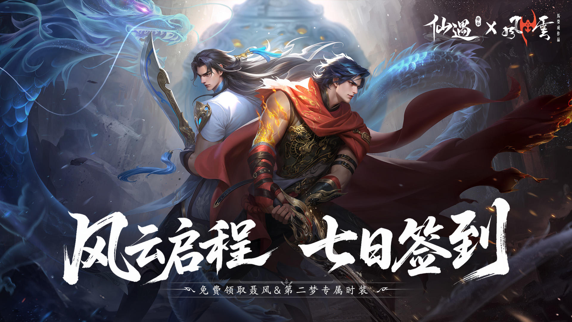 双节期间,除了福利爆满的【双节欢庆】以外。《仙遇》x《风云》联动也开启七日签到预热啦! 9月30日5点-10月15日5点期间,完成7日签到即可免费领取超多好礼! 注:新服为开服第1天- 8天 。 点击首页【风云联动】-【风起云涌】,即可查看签到福利、联动视频以及后续的活动预告。 前三天上线签到,即可免费领取聂风&第二梦专属时装【风起梦阑】三件套。 第4日可领取3个契铃;第5日可领取1个极品魂灯;第