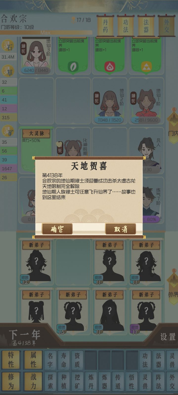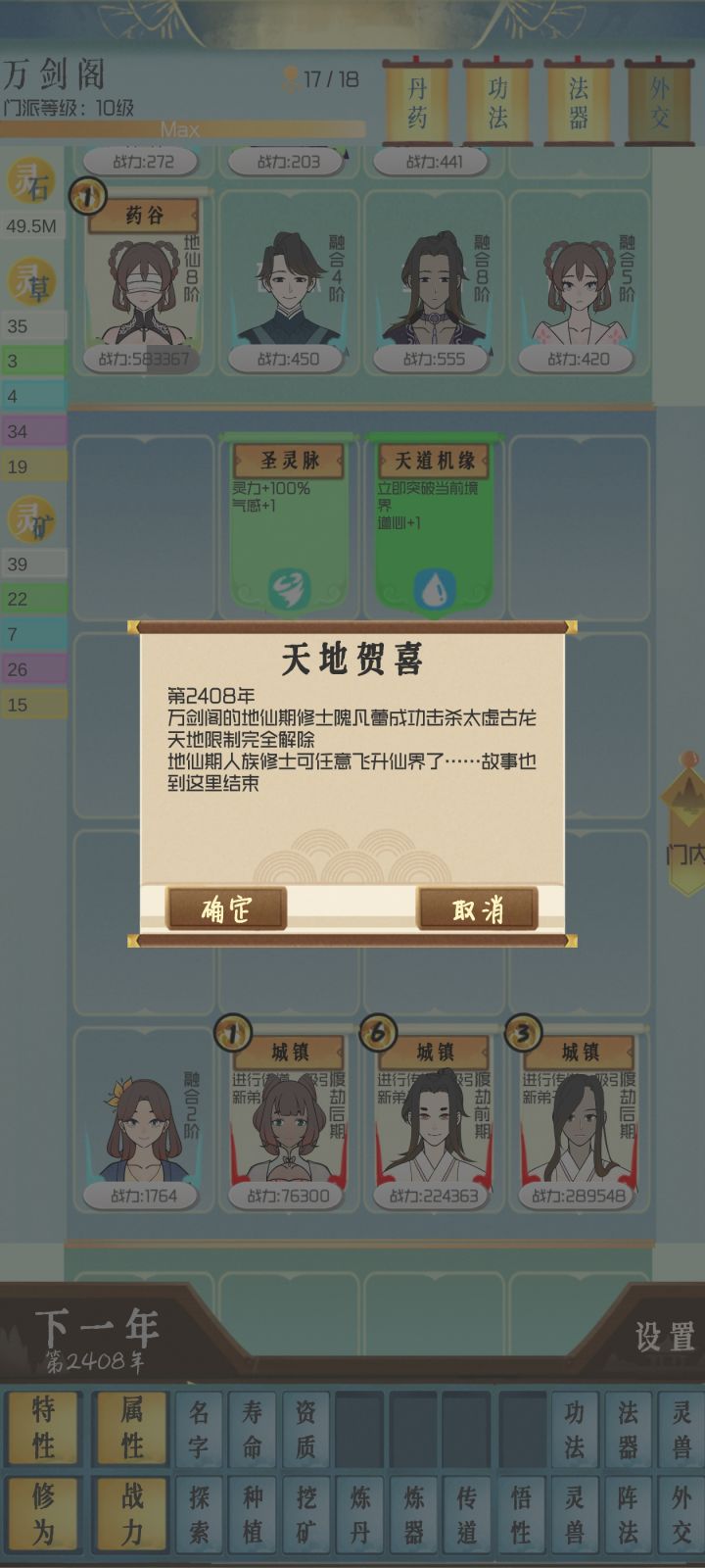 #仙门模拟器 反应过来。。。宗门满级了?