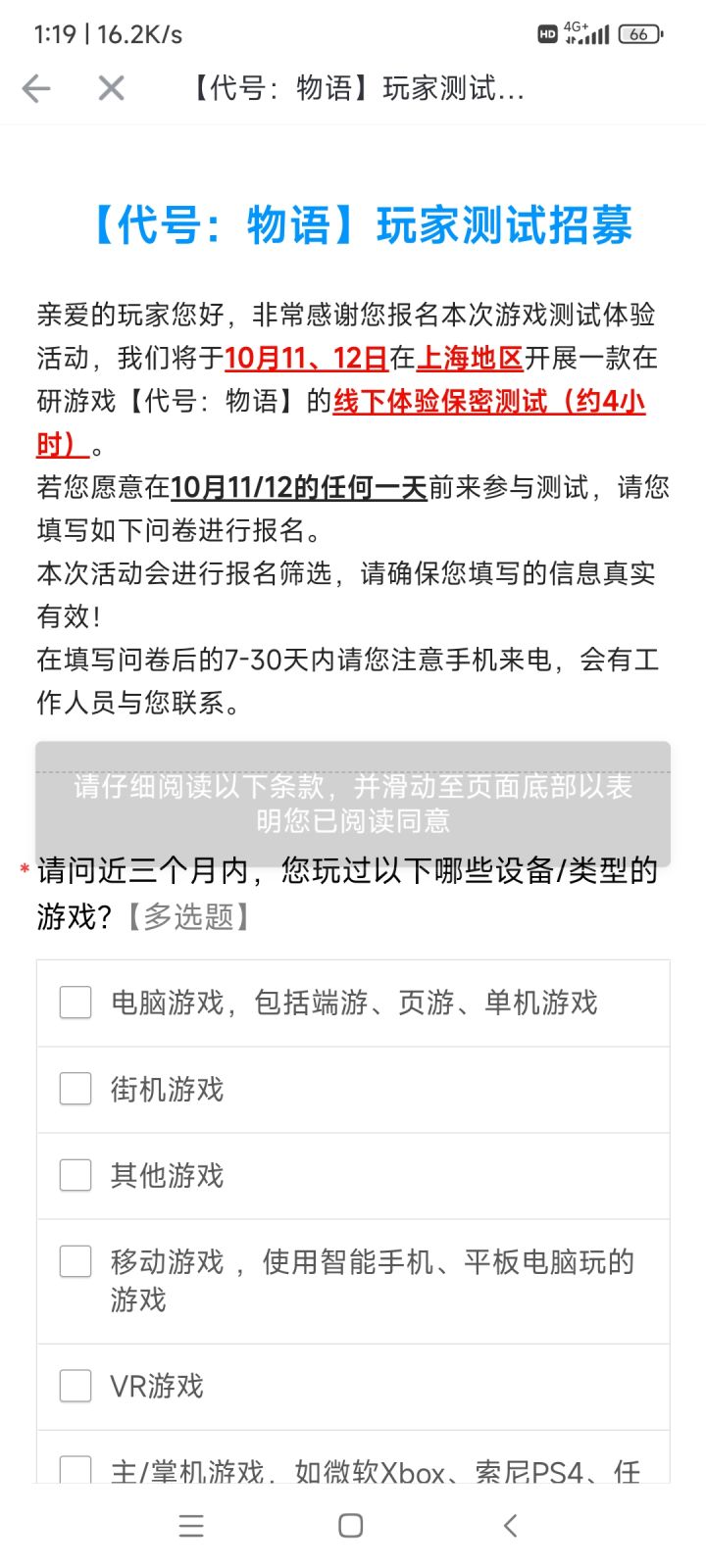b站看到的一个游戏,封面还用的地心护核者植物图片,这游戏到处都搜不到,说是线下隐秘测试,时间是上海9月11、12,当时以为只是个普通广告,填了之后11号的时候有人打电话说能不能去参加#代号 :物语