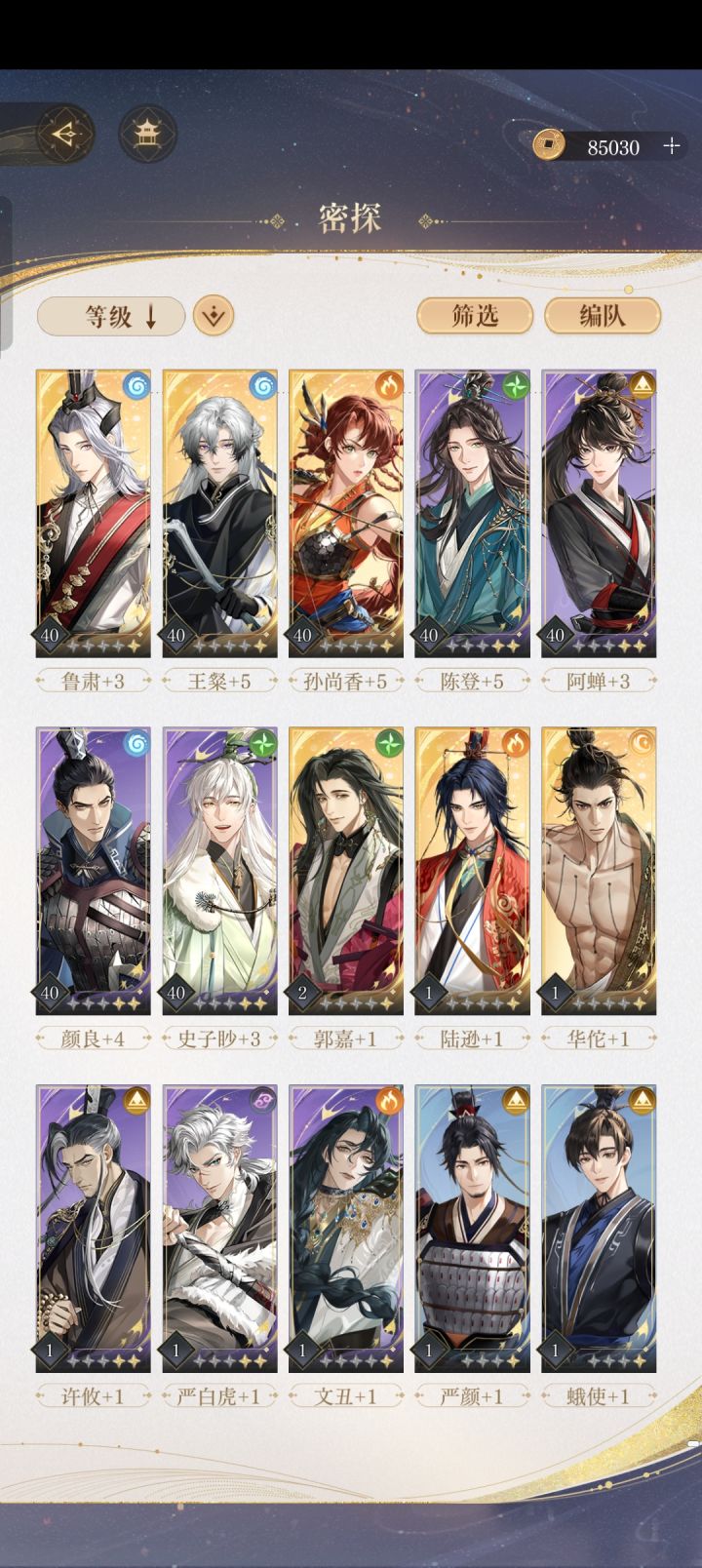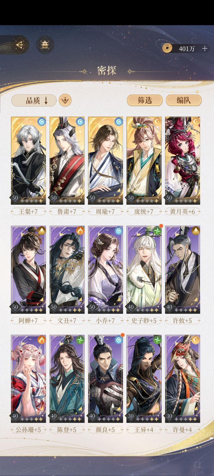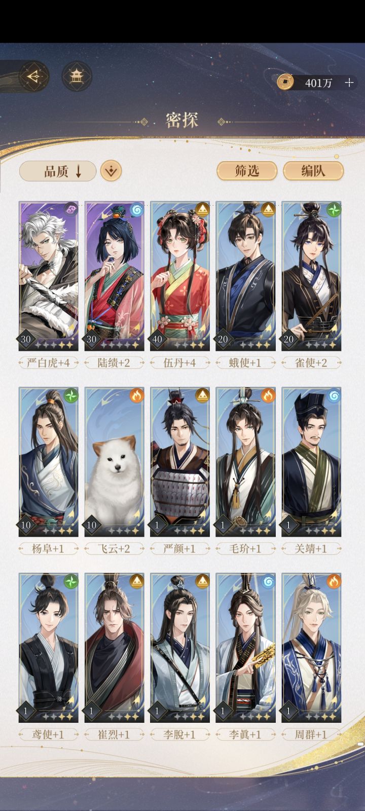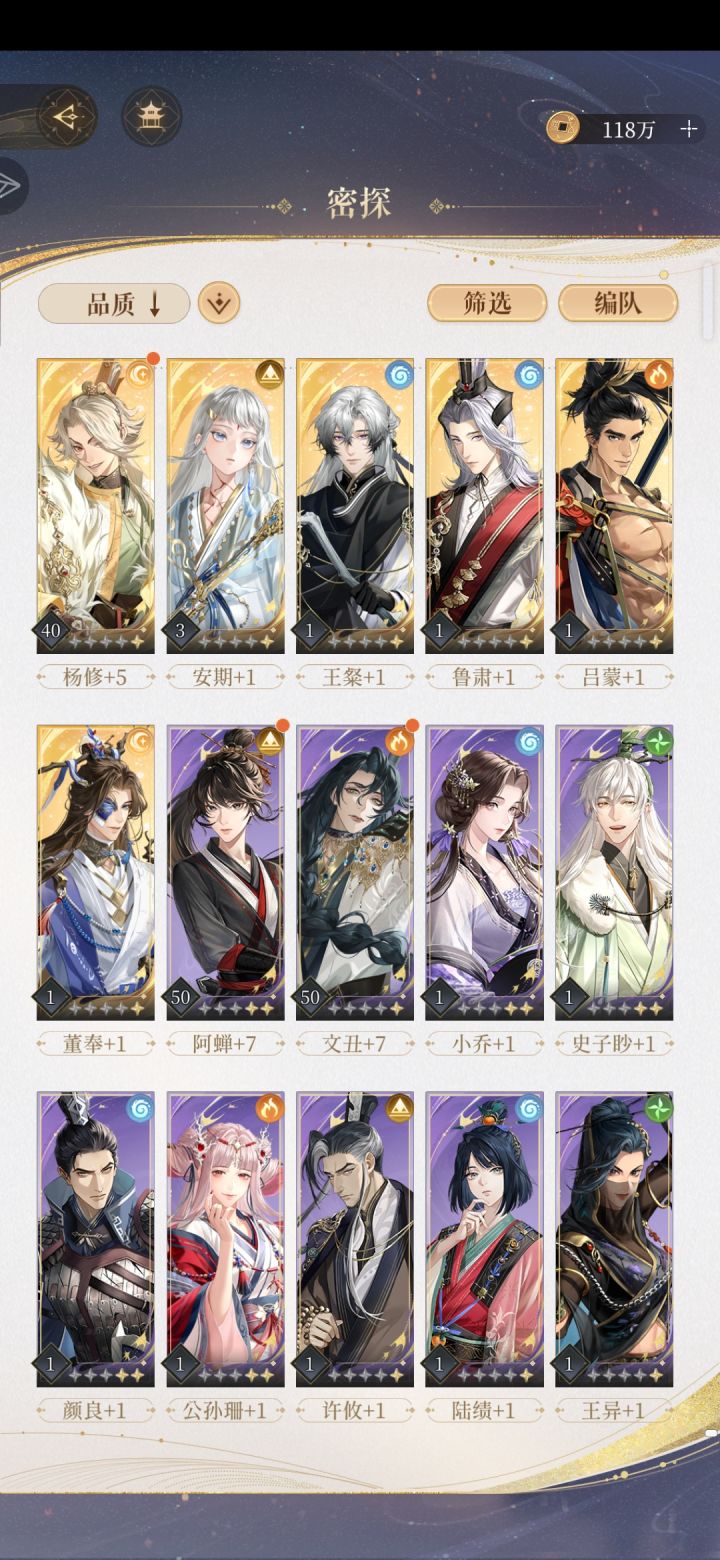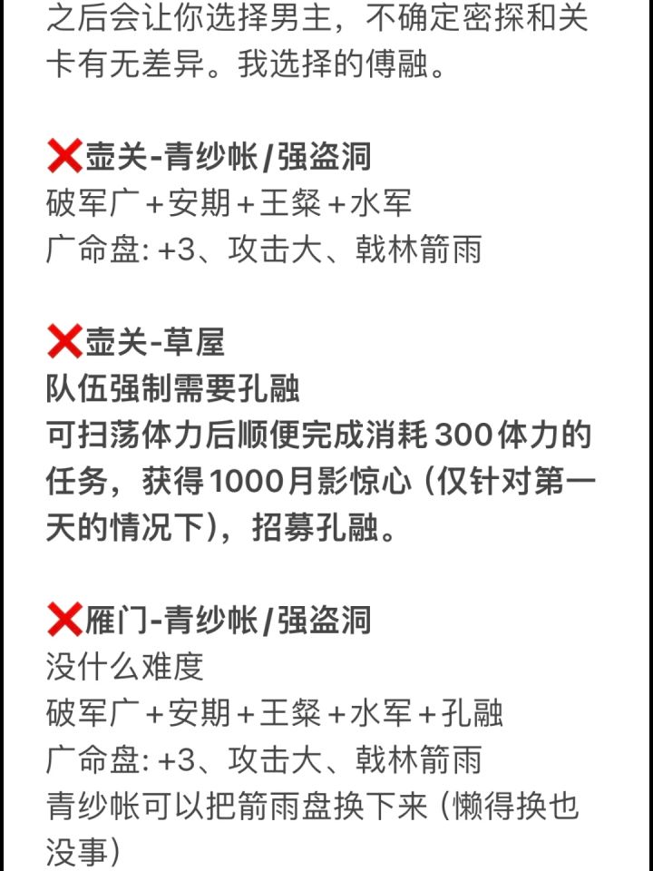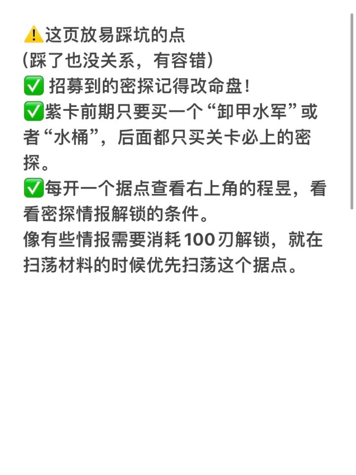 9.30晚更新: 已经把一个男主线打通并且解锁了大结局(就不过多剧透啦) 明天开始解锁其他男主线(all推就是猛猛干———————— 边哭边打边更新ing...... ◾️整体没什么难度,招募需要的密探都能打过去(小广当队长猛猛的)。 ◾️‼️只要注意⚠️招募一张紫卡用来前期打关,后面全部买关卡必备的密探! ◾️大家不要焦虑嗷❗️❗️因为我要写攻略所以把体力都买了,提前看看有什么踩坑的