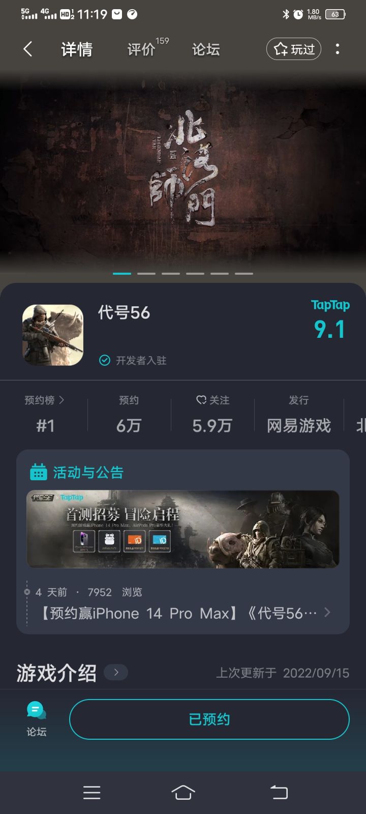 游戏已经在7月27日开启了首次测试, 感兴趣的同学可以在TapTap先行预约, 后续有最新消息可以第一时间得知!#游戏安利#代号56#奈尼芬惰