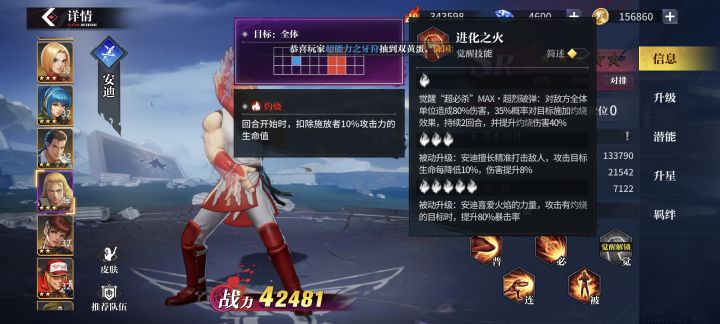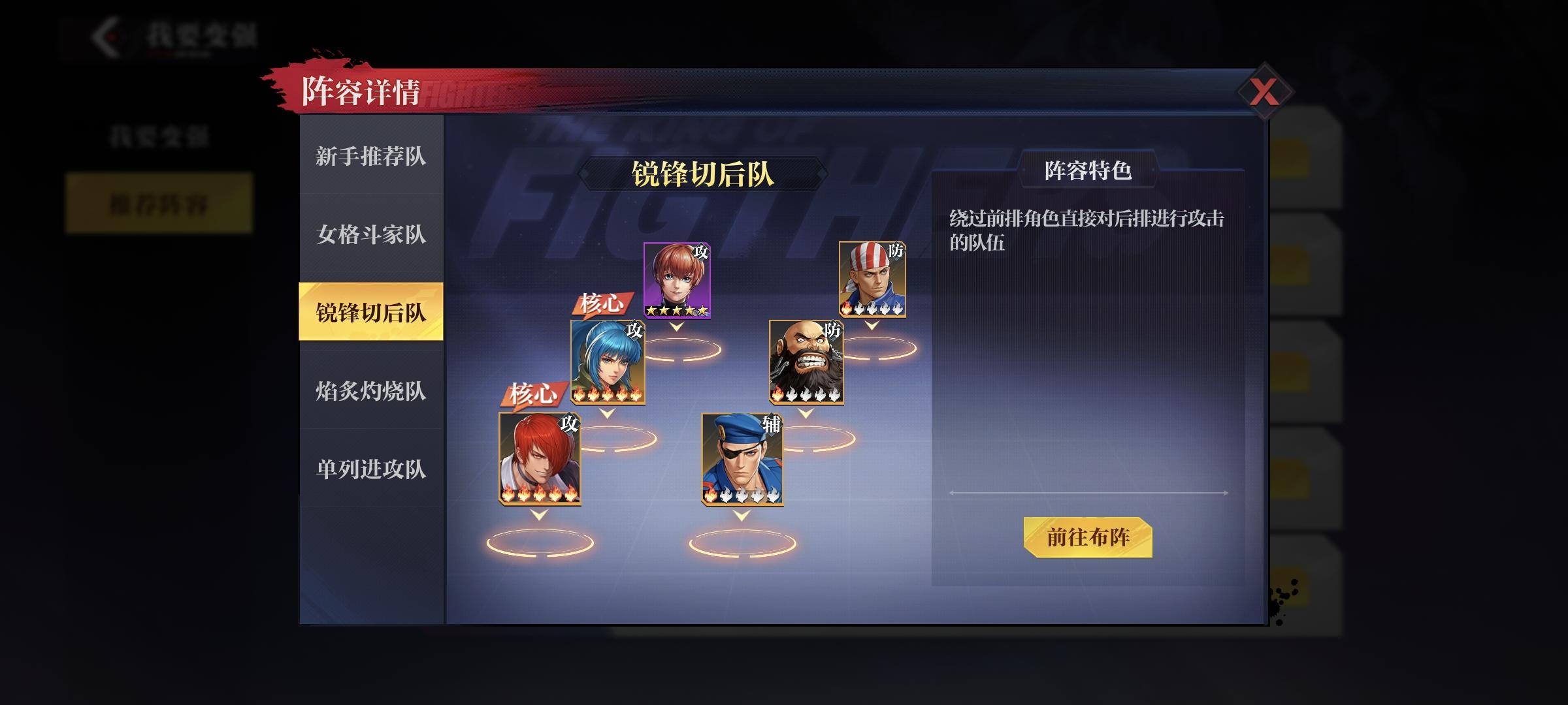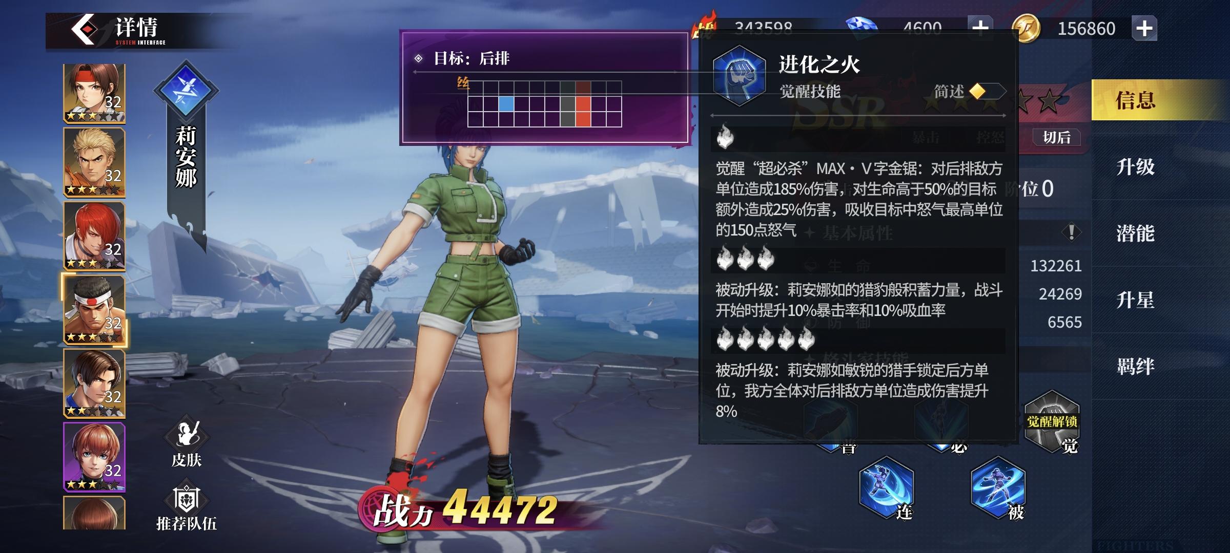 #kof新篇测试 #代号97 切后目前在pvp和pve都强的离谱核心莉安娜,增强全队后排伤害,大招暴力切后八神负责收割,觉醒后再次释放非常imba心愿直接锁八神莉安娜,潜能选打后排的其他下位克里斯 金 都是很好用的,特别觉醒后伤害爆炸辅助就哈迪兰,打拳皇pvp单挑无敌第二天大蛇也能进队最终队伍任意高星防御,哈迪兰,大蛇金/克里斯,莉安娜,八神