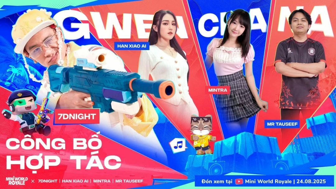原創作者@Mini-X 《迷你槍戰精英》聯動四位藝員代言人上線,藝員代言人聯動MV《GwenChana-沒關係》就在8月24日正式播出! 《迷你枪战精英》联动四位明星代言人上线,明星代言人联动MV《GwenChana-没关系》就在8月24日正式播出! #miniworldroyaleXmeowUIA #miniworldroyale2025 #bigheadminiworldroyale #min