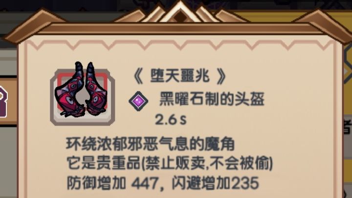 伊洛纳以太杯参赛作品黑星装备《堕天噩兆》黑曜石制的头盔耐火 耐酸环绕浓郁邪恶气息的魔角。它是贵重品(禁止贩卖,不会被偷)防御增加447,闪避增加235——————————————速度+10心眼+25「招魂术」+20法力上限+20%暗影耐性+200地狱耐性+300地狱魔法强度提高100使每次攻击附加200%地狱属性追加伤害首次攻击降低目标30%的地狱耐性控制周围的