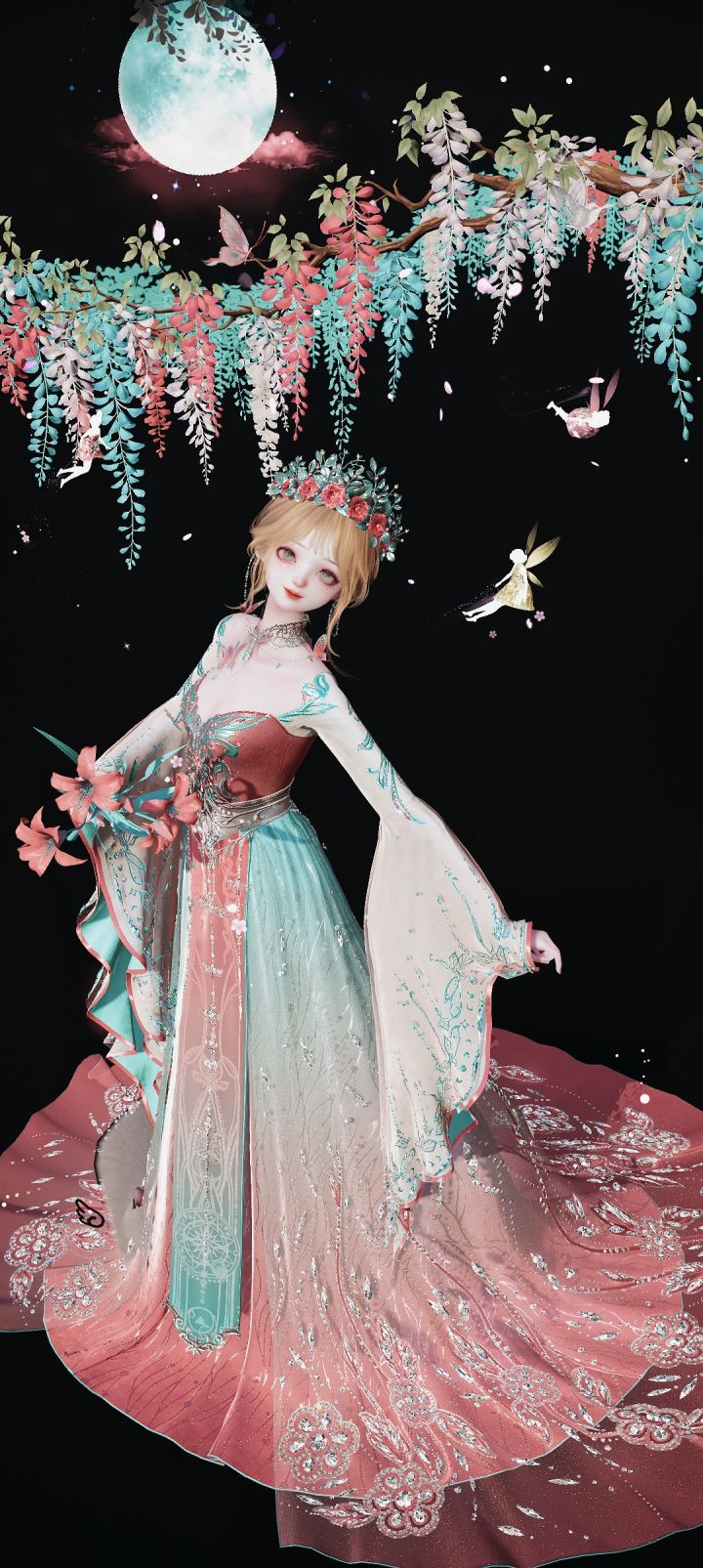 走在路上,被小魔女抓住了#以闪亮之名皎月神祇 抽到大月亮和裙子,快落了