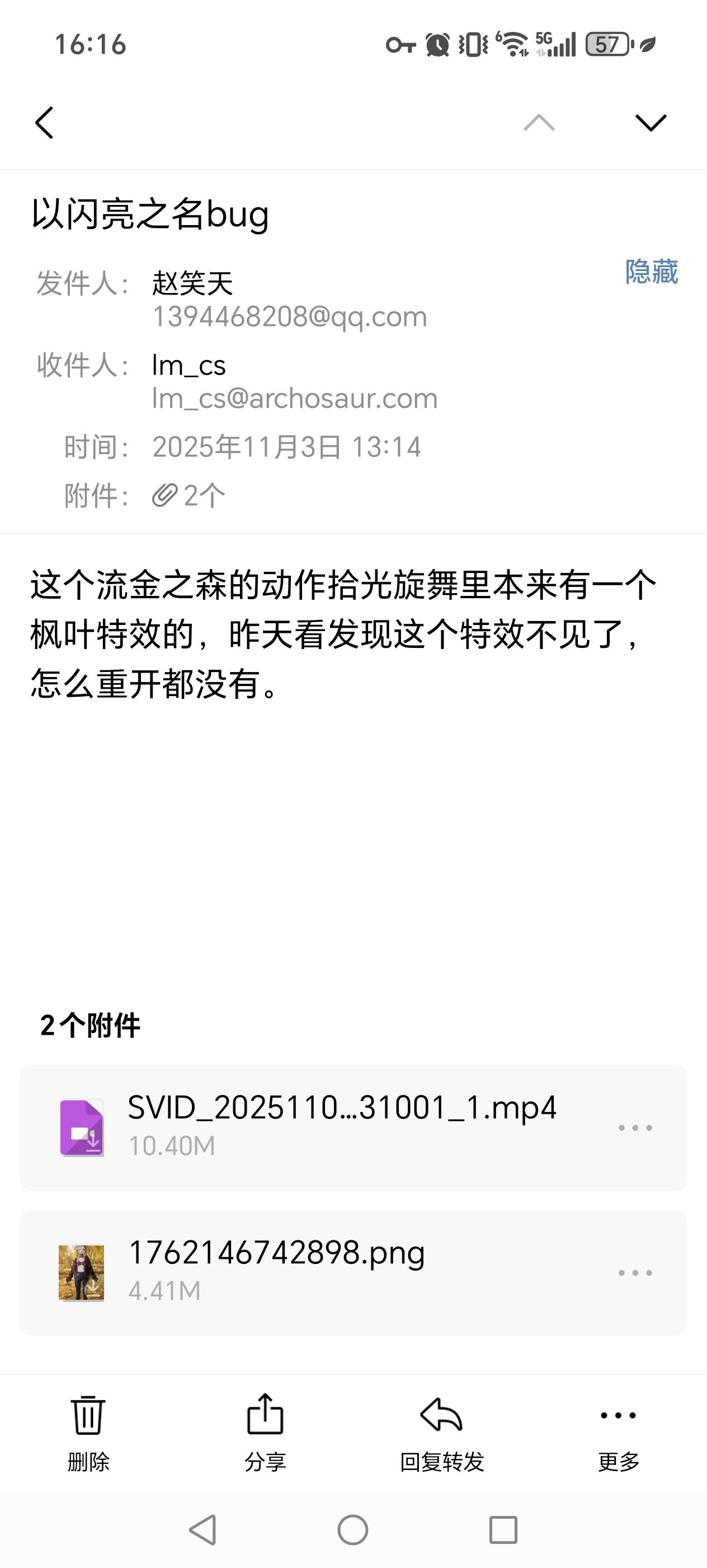 我买的流金之森背景当时是为了特效买的,但是特效没有了,跟客服反应让往这个地址lm_cs@archosaur.com发邮件,我发好几次了是发错了吗?一直没回我。#以闪亮之名 #以闪亮之名bug