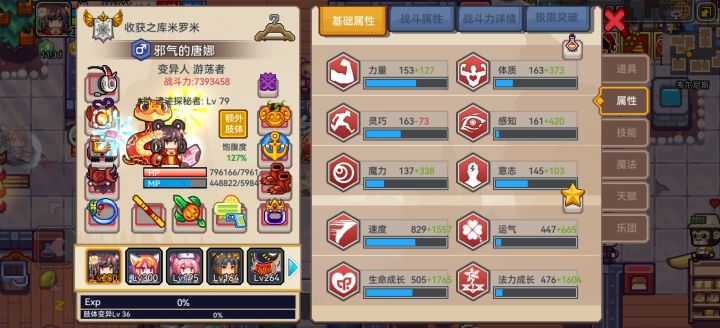 主属性和下四,点击没有弹出看潜力值的框。#伊洛纳生命法力成长 #伊洛纳格斗萌新