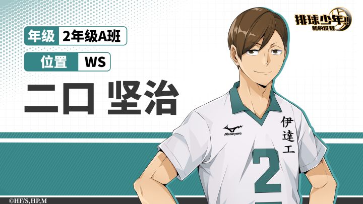 🏫伊达工业高中🏐二口坚治背号:2「这跟有没有明年无关,立场那种东西,一旦走进球场都不是重点」担任其中一面「铁壁」,王牌主攻手兼新任队长!他强力的发球兼具威力与速度,在发球和拦网上都有完美的表现,是伊达工业的BIG SERVER。#排球少年 #排球少年手游 #排球少年新的征程 #伊达工业高校 #二口坚治