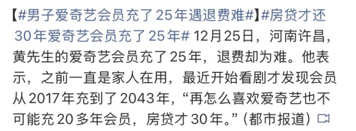 爱奇艺充了25年,现在退货遇到困难了