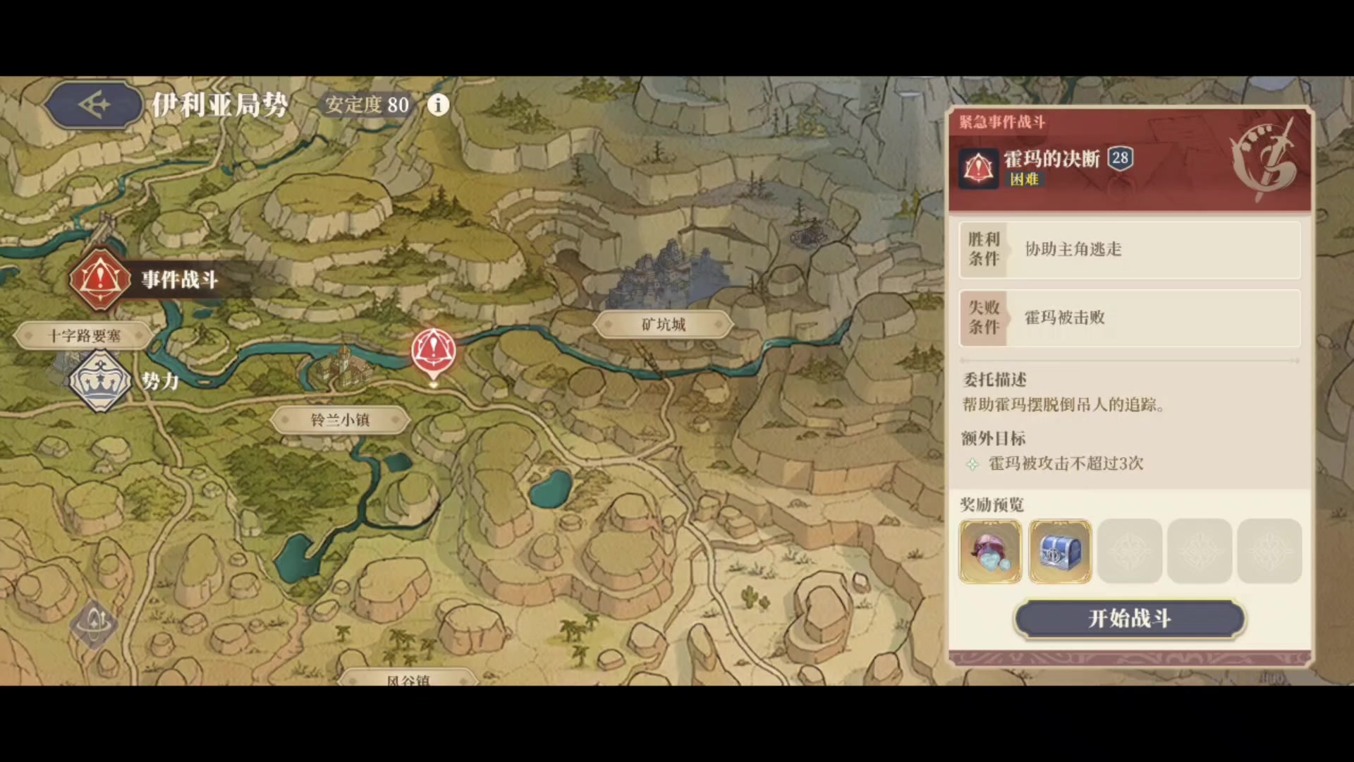 完成额外目标。 战后过场有个选项是锁着的,要用燃烧的伊利亚信标开局才能选,选了跟索菲亚的对话不一样。 #铃兰之剑 #命运的螺旋 #索菲亚 #团长 #伦伽勒 #内尔伽勒