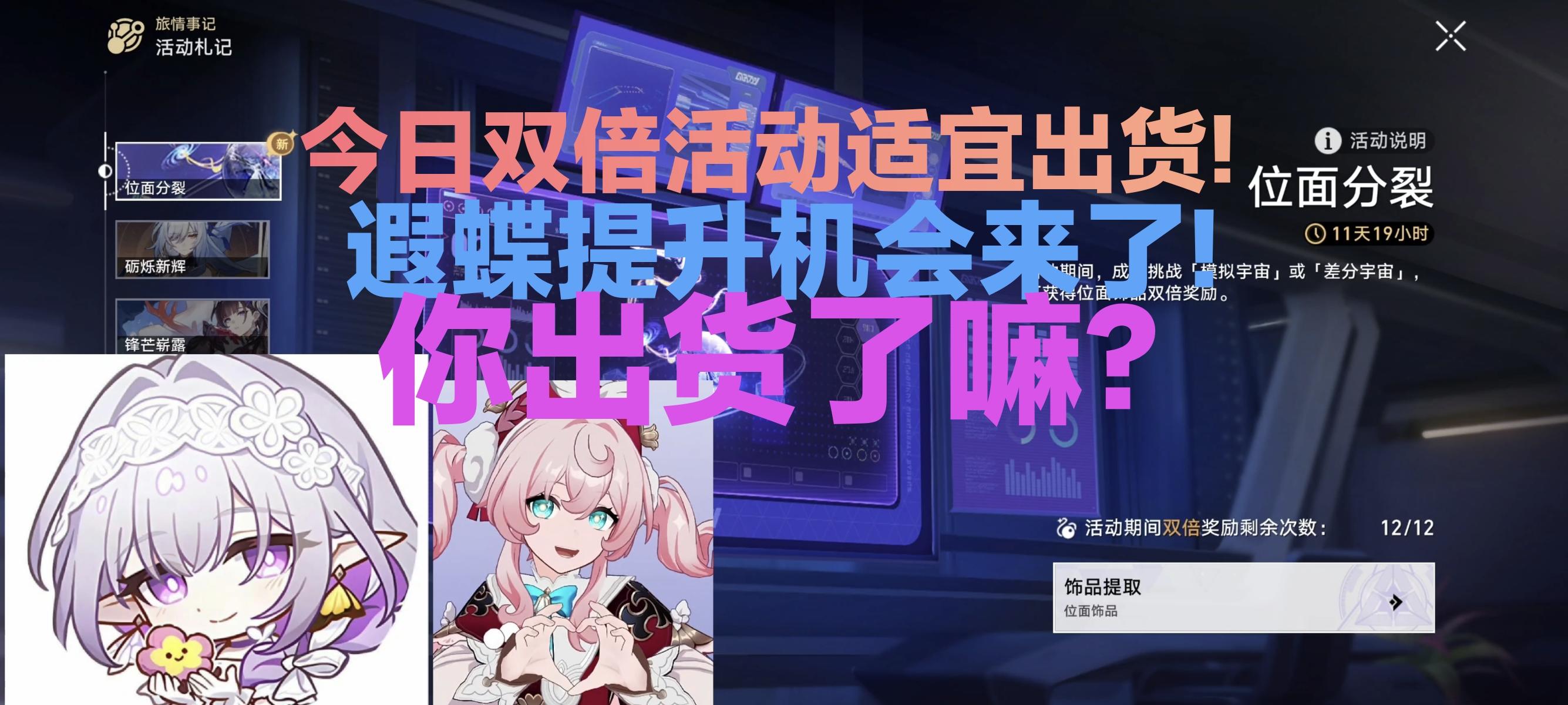 今天良辰吉日,位面分裂,双倍内圈!遐蝶提升机会来了,是时候展现真正技术!#崩坏星穹铁道 #位面分裂#星穹铁道位面分裂 #极品仪器#仪器强化
