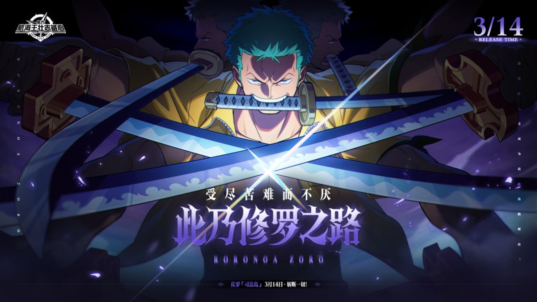 以利剑斩断阻碍,踏上修罗之路。 新伙伴佐罗「司法岛」将于3月14日登场,敬请期待! #航海王壮志雄心 #魔方航海王壮志雄心 #佐罗司法岛 #佐罗 #司法岛 #阿修罗