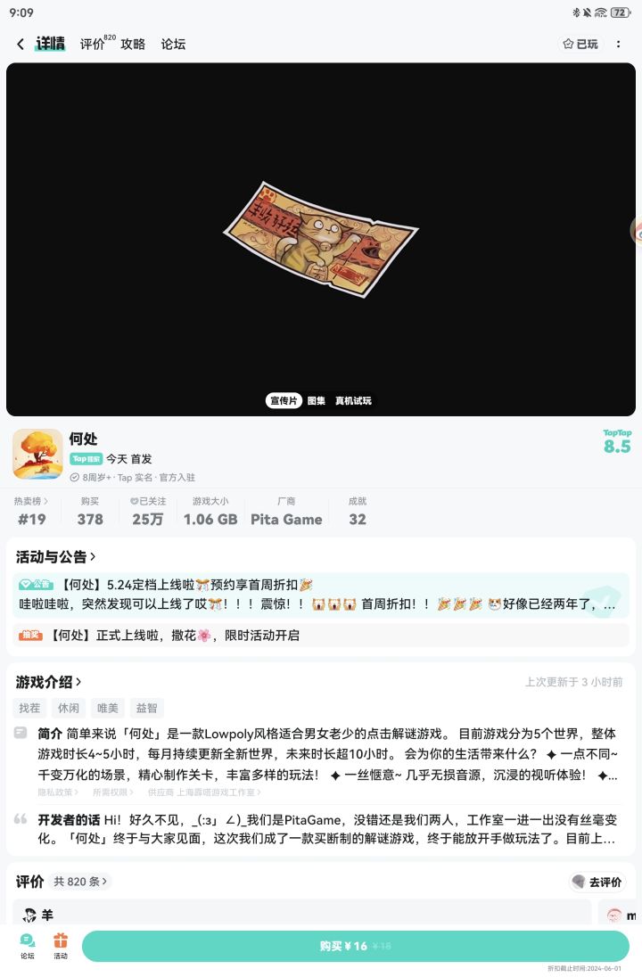 #游戏日常 TapTap游戏平台,发行了一款烧脑游戏,推荐给大家。#TapTap#何处#缘起何处 #何处 @柠夏云初