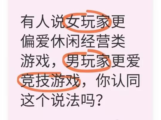 有人说女玩家更偏爱休闲经营类,男玩家更爱竞技游戏,你认同吗?
