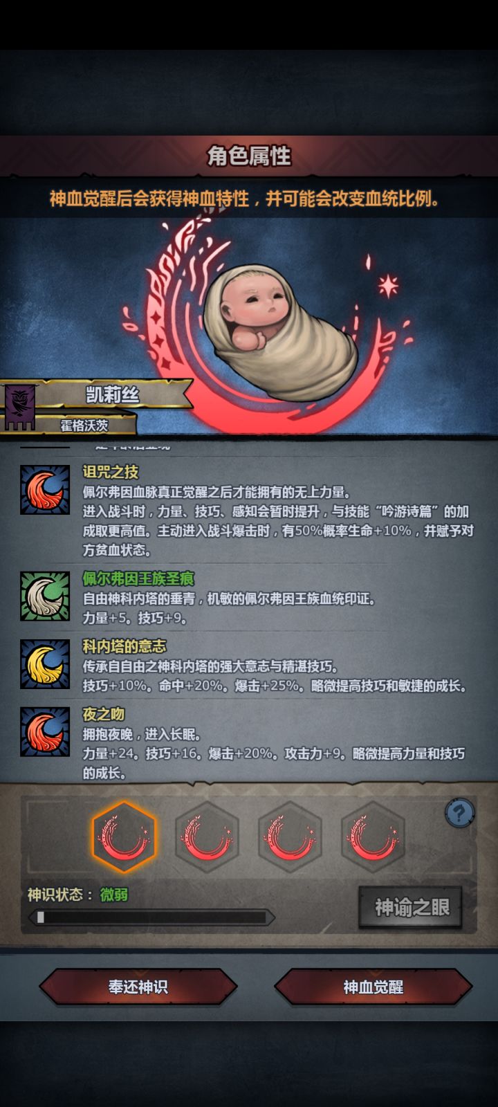 回坑后为了佩尔神子,一周暴推100年,重新拉佩尔血脉,科内塔赛南神像20级,经历数次奉还神识,改名忘记注入后,于今日最后八个月彻底破防。终于找到4SB敏苗子后,狠心注入,结果四个面板都没有洞察,破防了。#佩尔神子