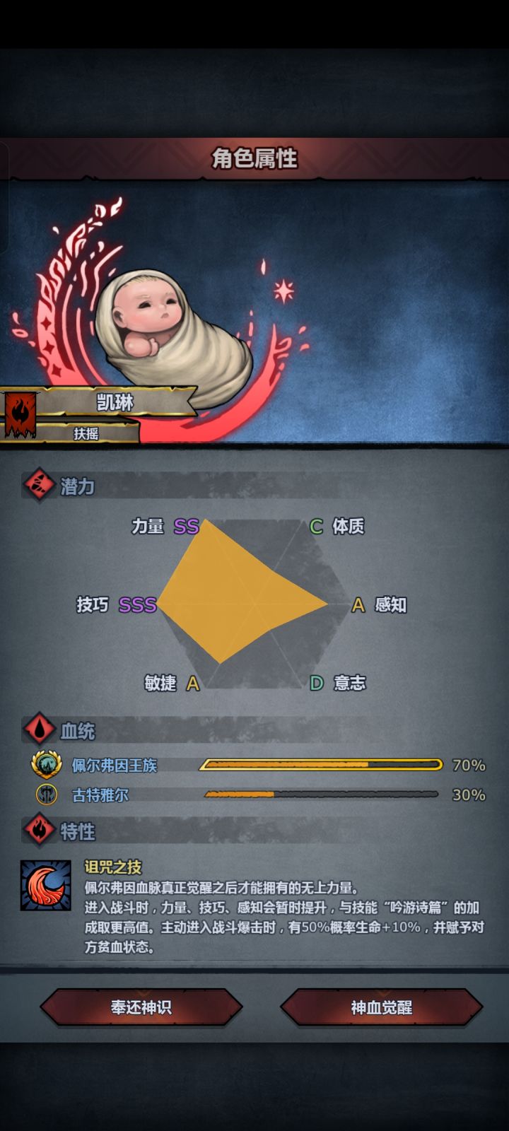 本来混血古特的,但是一直没有属性好的,心一横,给她注入了,打算吃150级剑圣,这样也可以整150敏捷,最后学完技能转内宗,太棒了,以后用她砍死一切敌人#诸神皇冠#佩尔神子