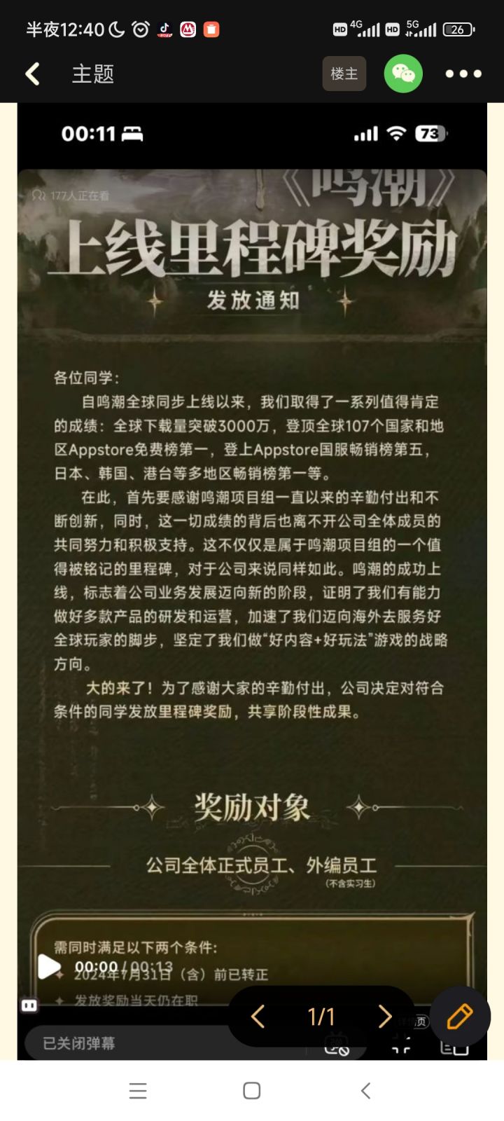 在绝区零发售后隔壁论坛有网友爆料,库洛开始给手下发奖金了,并且表示严肃庆祝包括:107个国家地区免费榜登顶,appstore畅销榜前5,下载量3,000万等多个好成绩!并准备用各种奢侈化妆品,游戏机,手机等奖励员工(不包括实习生)。给员工吃了一颗不会暴毙的定心丸。玩家们的邮件空空,可能又要等很长一段时间。哦,不用等了,目前bug补偿从160砍到了80(图4是原来的,图5是现在的)#鸣潮