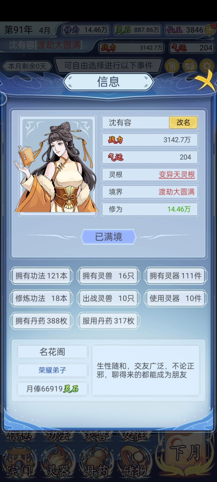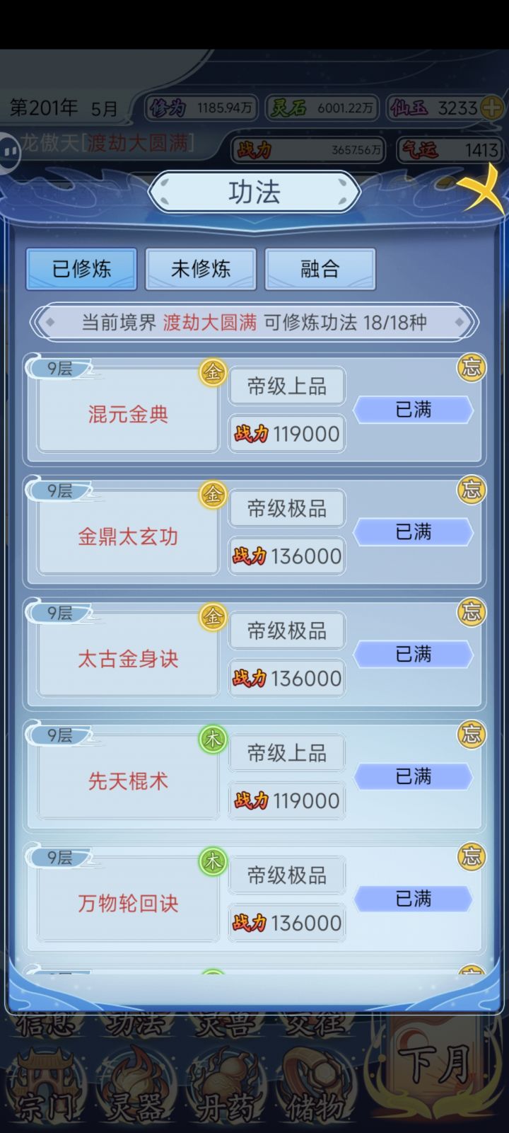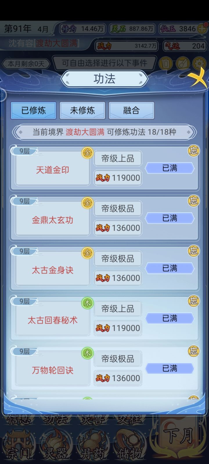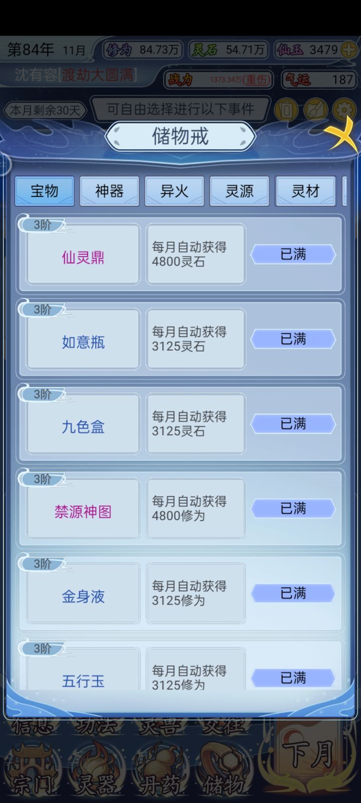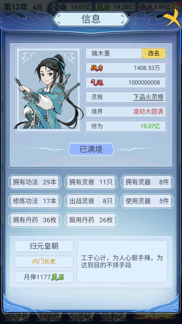 都收集满了,其他的能加战力出来炼丹、魔窟、禁地等,以及与好友切磋、结拜,其他功法、魔兽、武器、神器都满了。就那个宗门身份只提到荣耀弟子。腻了,就这样啦#修仙人生模拟器 #