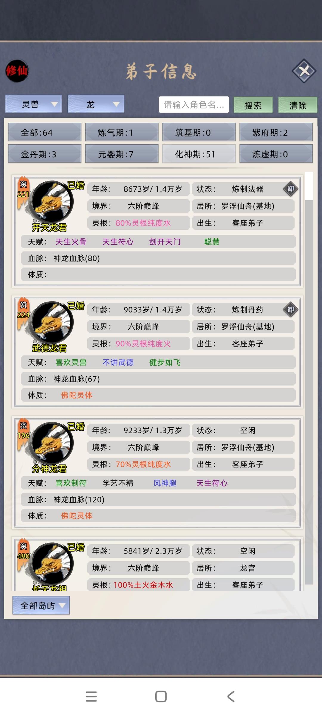 豪华名人档,要存档进群吧!(群:965462090)把名人都抓齐了还没有配,只有一个韩老魔没抓感觉没啥用而且是高傲性格,全神兽蛋,九龙丹绝品丹各50个,看图。而且最近还在弄存档修改看后面两图🤣。#单机游戏 #修仙家族模拟器
