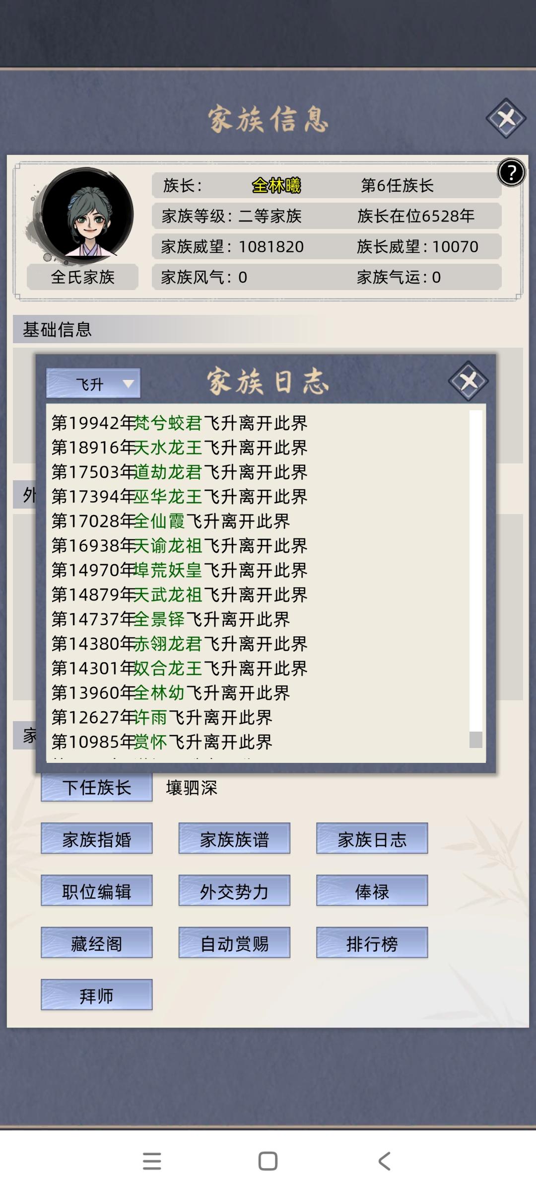 家族模式,无天赋,少sl,选上开局必要的12个族人每隔一段时间就很想玩这游戏,但是存档一天没碰就没耐心玩下去,开个记录贴记录下。#修仙家族模拟器