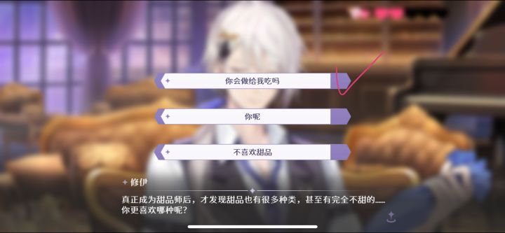 一点点修伊夜莺对话的……攻略吧!图片塞不下了所以↓饮料:青柠果冻葡萄汁 清爽海岛冻椰青 热带爆珠冰沙料理:蜜蜂薄荷软松饼 樱桃脆饼黑巧派 香烤蜂蜜苹果挞完美突破的修伊好帅嘿嘿🤤🤤🤤#修伊#攻略#欢迎来到梦乐园