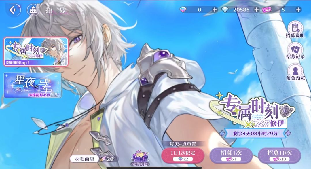 攒了两万多钻,在电脑上玩的时候祈祷不要出我就先垫20抽因为我想在手机上录屏,然后拿起手机刚上线开始录屏第一发十抽就出了。。[表情_委屈] #欢迎来到梦乐园 #修伊 #抽卡
