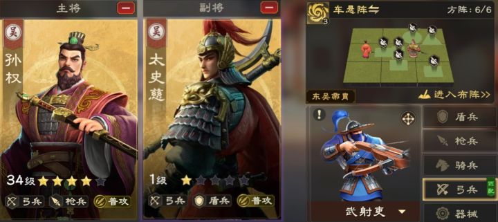 一、 前言 偃武第一批次玩家开荒已经告一段落了,目前每个地区已经进入混战模式,那么一队强力的PVP阵容在这时就非常重要。所以这篇攻略就直接推荐3队PVPT0阵容供大家参考。二、阵容推荐T0普攻队 由孙权加太史慈,搭配车悬阵和武射吏组成,通过普攻伤害输出,配合武将提供的暴击,爆发仅次于暴击骑。在野战合围和追击等场景,以及主动进攻的时候都非常好用。主要克制反击枪,然后被技能骑和异常盾克制,野战